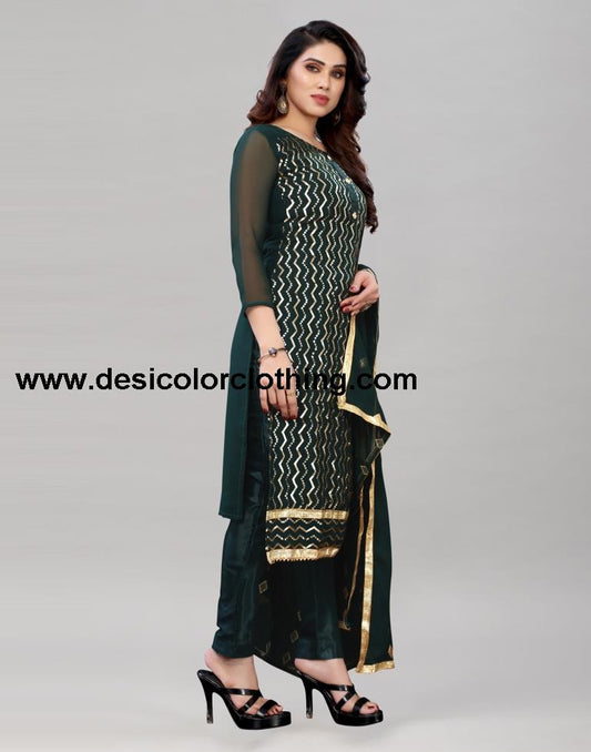 Amazing Dark Green Georgette Sequence Work Unstitched Salwar Suit