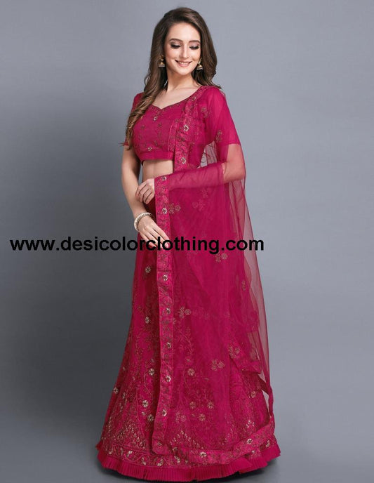 Blooming Pink Coloured Net Emroidery Casual Wear Lehenga | SLV113L10322