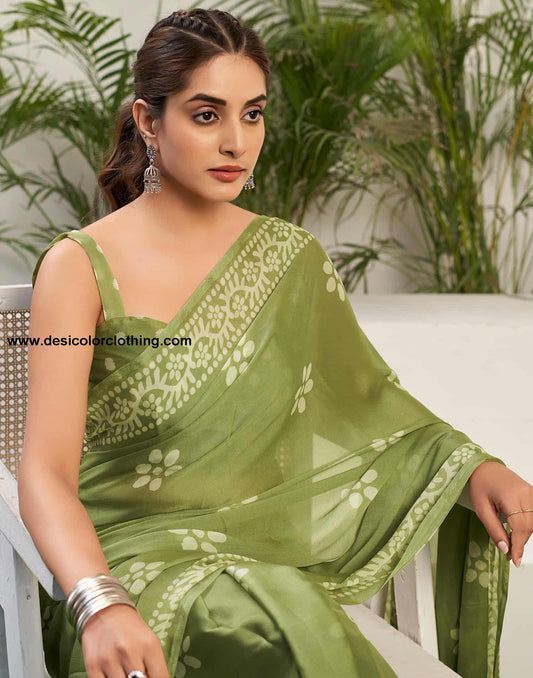 Pista Green Coloured Poly Cotton Printed Casual saree