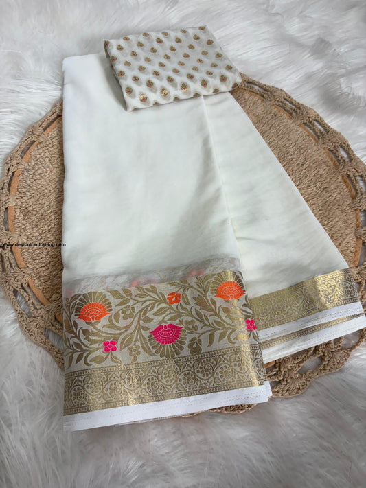 Pure chinnon chiffon sarees with all over embroidery and contrast blouse