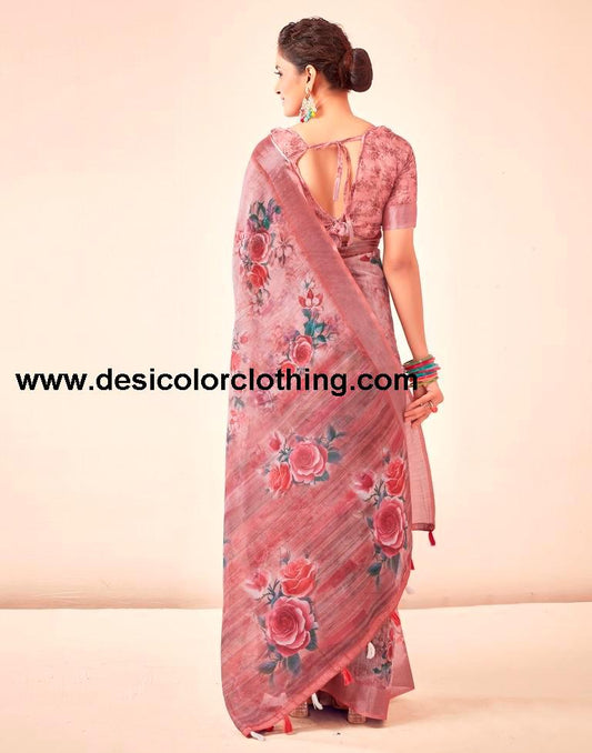 Rose Pink Coloured Printed Cotton Saree | SLV1547S47