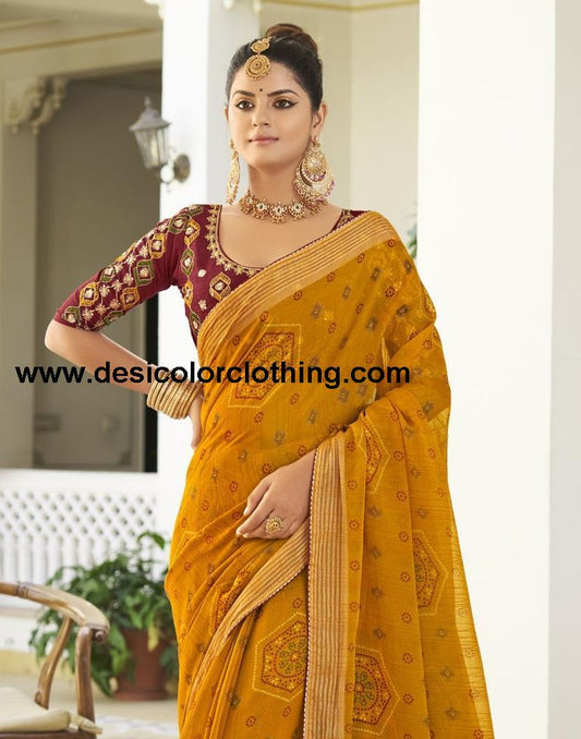 Turmeric Chiffon Bandhani Saree
