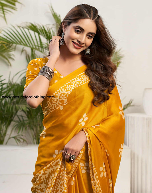 Turmeric Yellow Chiffon Leheriya Printed Saree