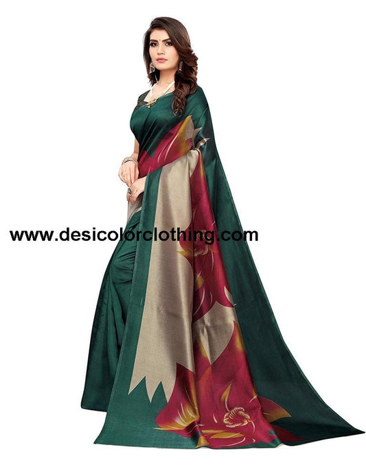 Turquoise Blue Coloured Poly Silk Printed Casual saree