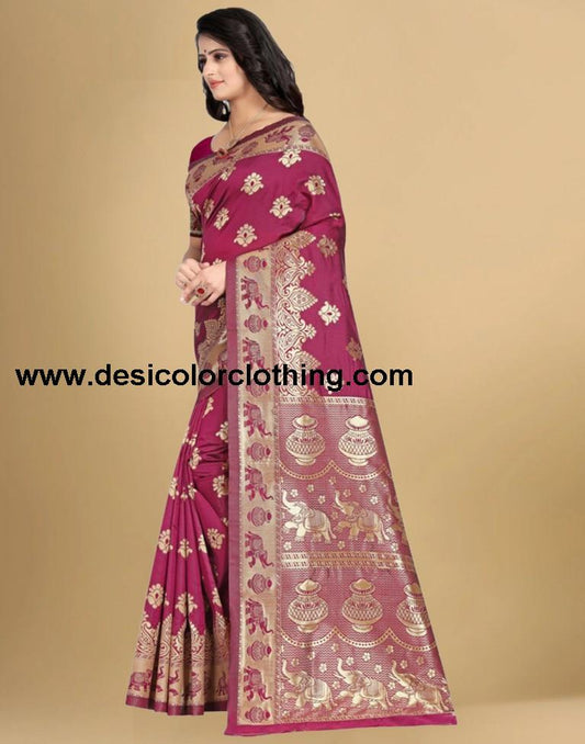 Wine Coloured Lycra Foil Printed Saree | SLV2197S108