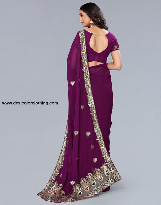 Wine Georgette Plain Saree