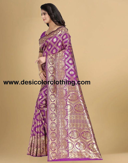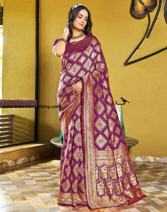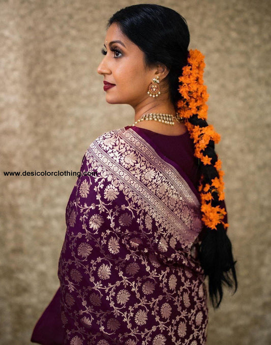 Wine Jacquard Banarasi Silk Saree