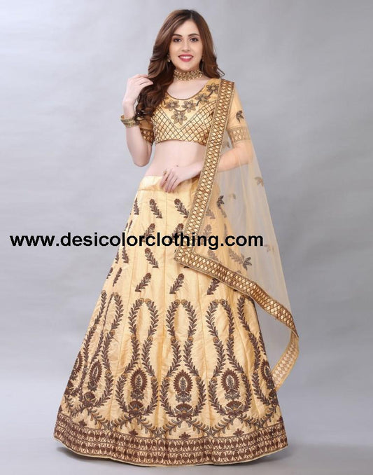 Bedazzling Cream Coloured Satin Silk Embroidered Casual Wear Lehenga | SLV119L10408