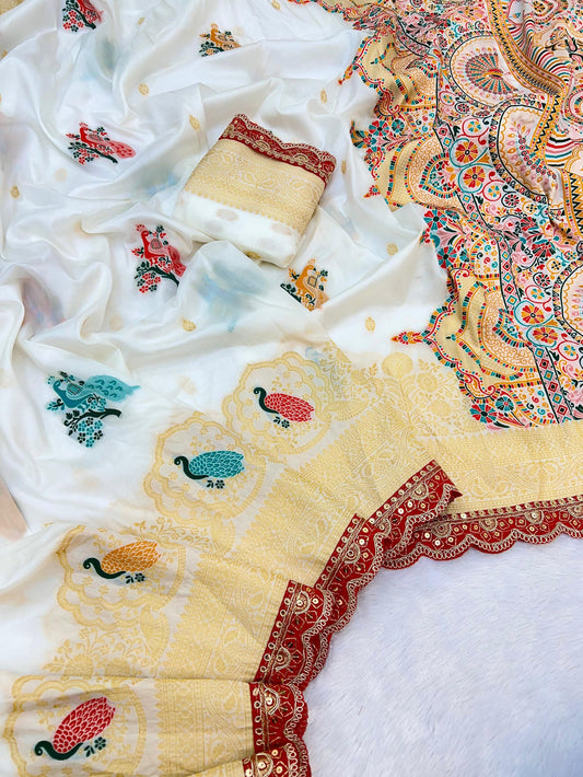 Designer Tissue Silk Saree with Woven Patta & Pallu