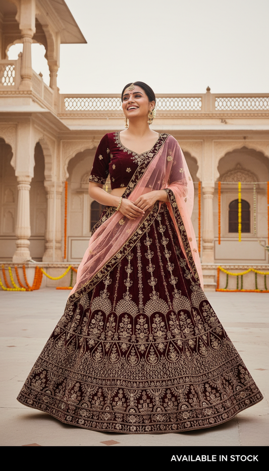 Designer Heavy Grand Velvet Lehengas | Luxury Bridal & Wedding Lehengas