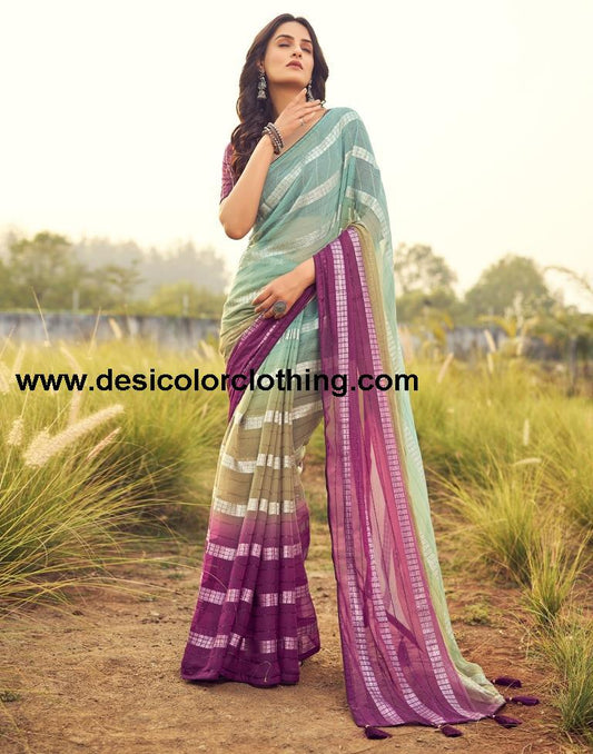 Dark Teal Green Chiffon Bandhani Printed Saree