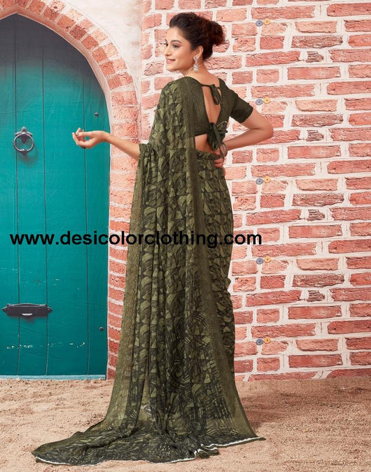 Dark Pink & Blue Silk Saree with Lace, Hot Fixing & Jacquard Brocade Blouse