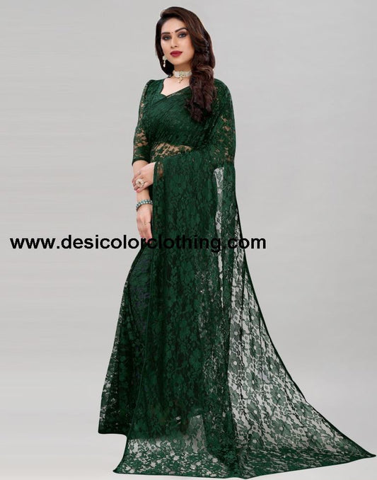 Dark Green Chiffon Plain Saree