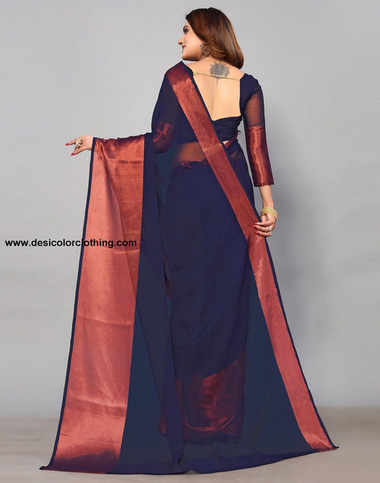 Dark Blue Chiffon Plain Saree