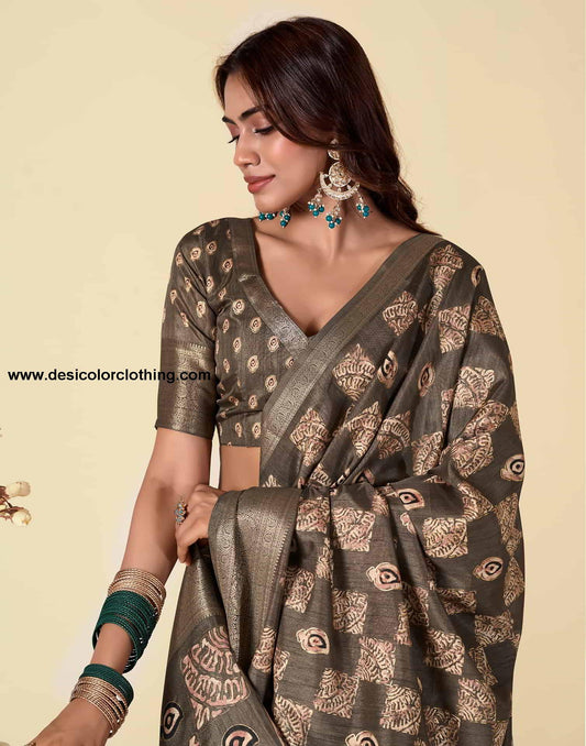Brown Coloured Jacquard Silk Saree | SLV1604S108