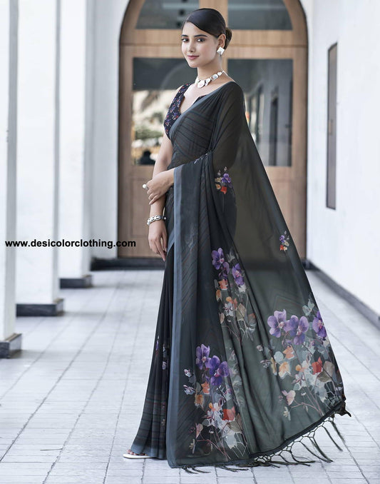 Black Georgette Printed Saree