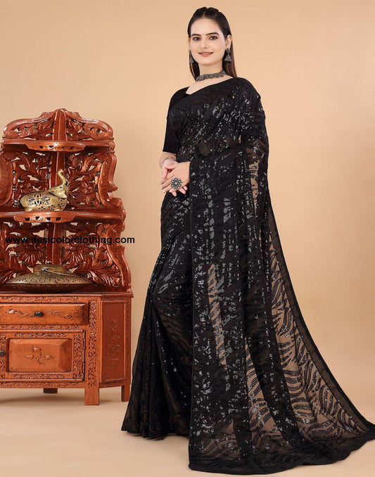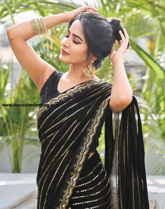 Black Georgette Sequence Saree