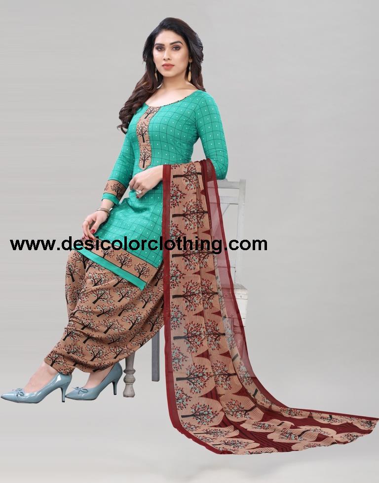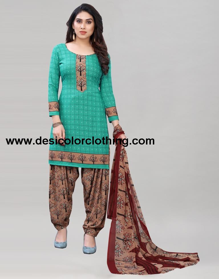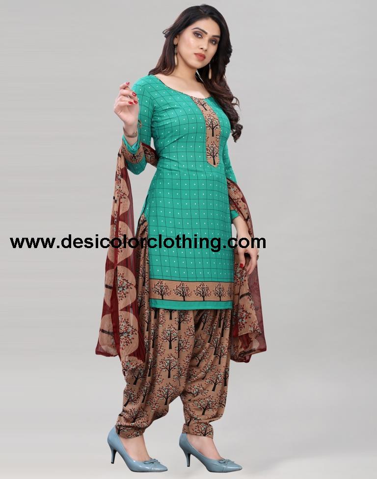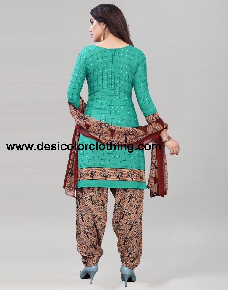 Bottom Color:Brown Bottom Fabric:Polyester Bottom Length:2.25 Mtr Bottom Work:Printed Dupatta Color:Brown, Multicoloured Dupatta Fabric:Georgette Dupatta Length:2 Mtr Top Color:Turquoise Green Top Fabric:Polyester Top Length:2 Mtr Top Work:Printed