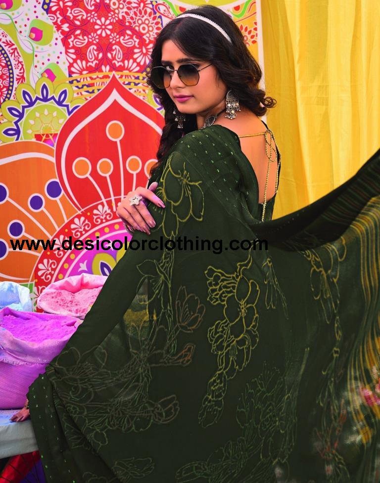 Army Green Georgette Printed Saree
