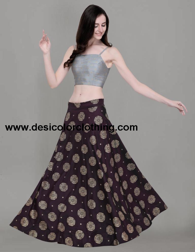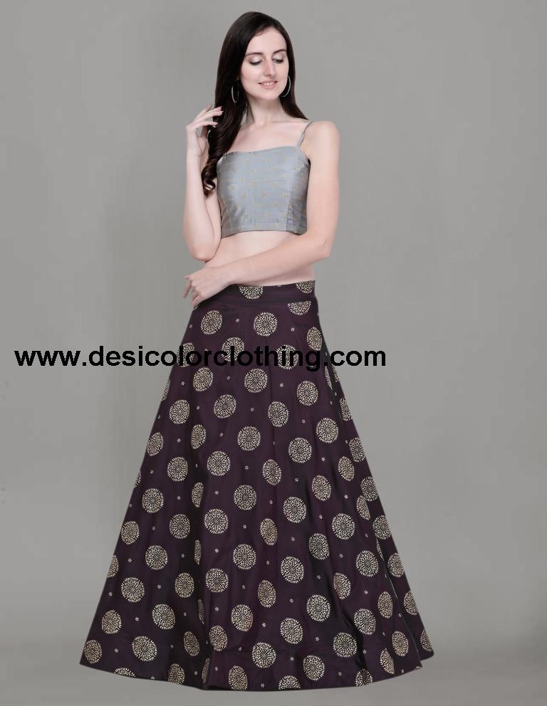 Beguiling Purple Coloured Poly Silk Foil Printed Casual Wear Lehenga
