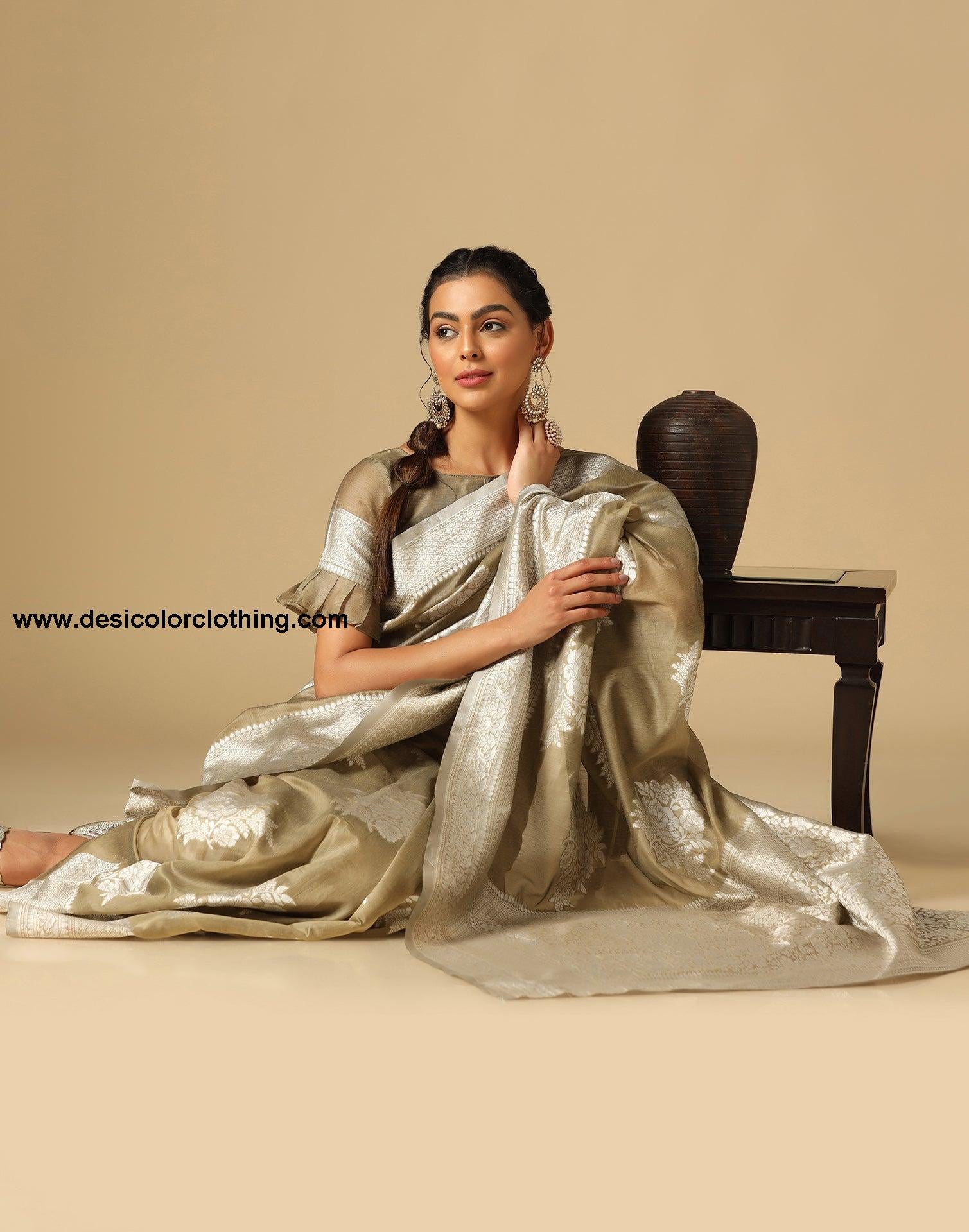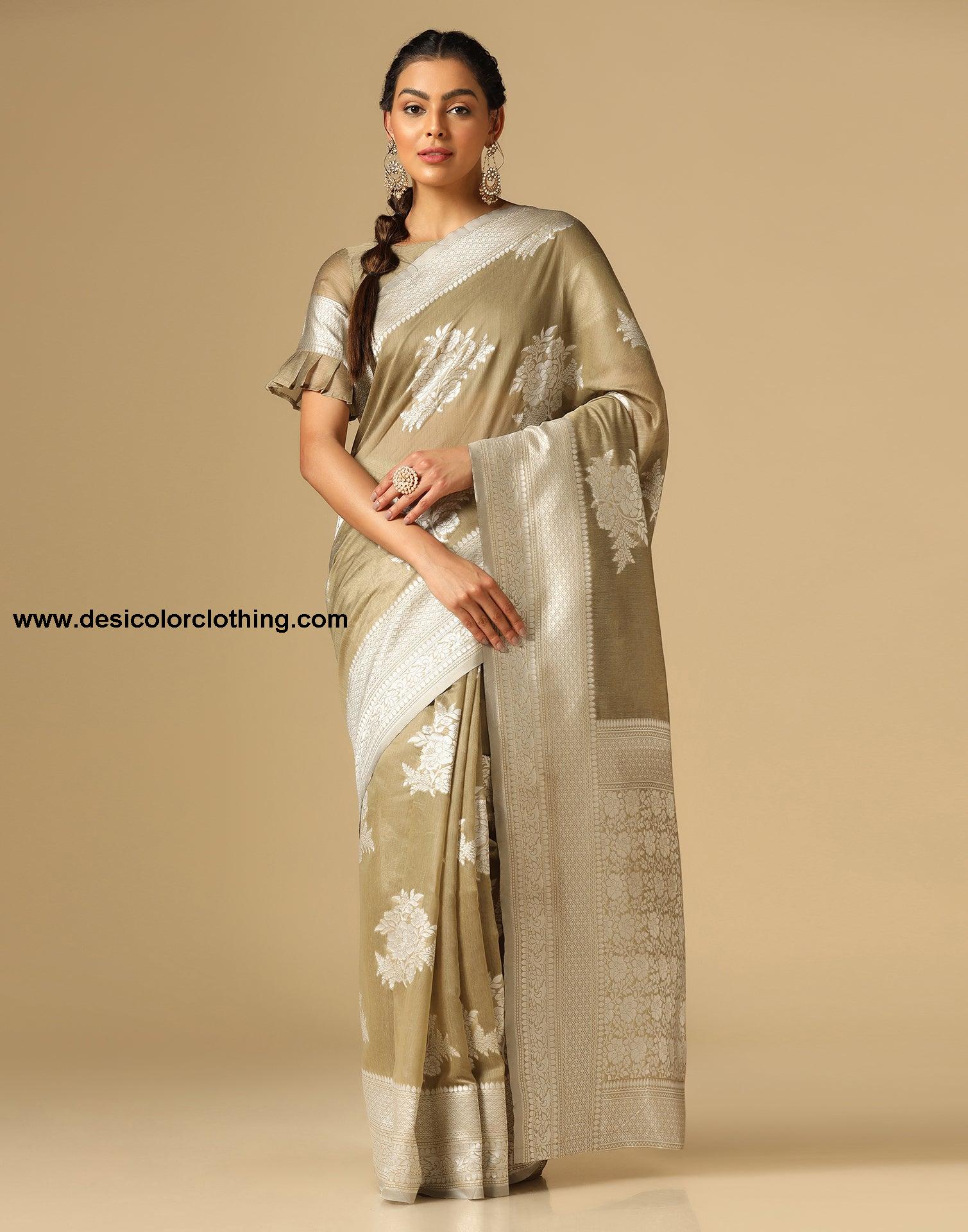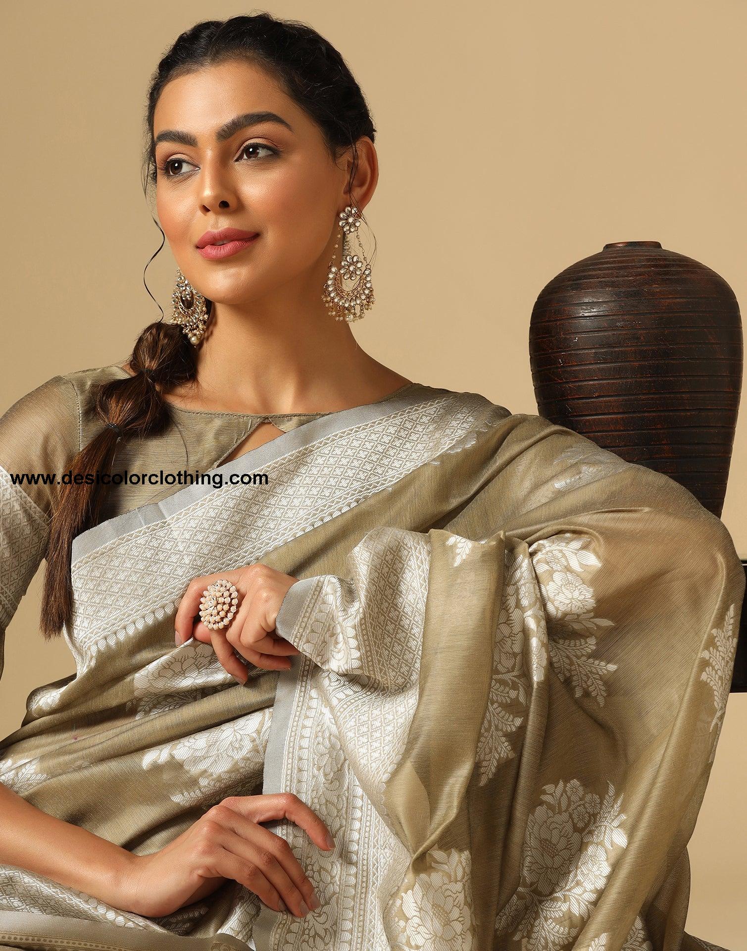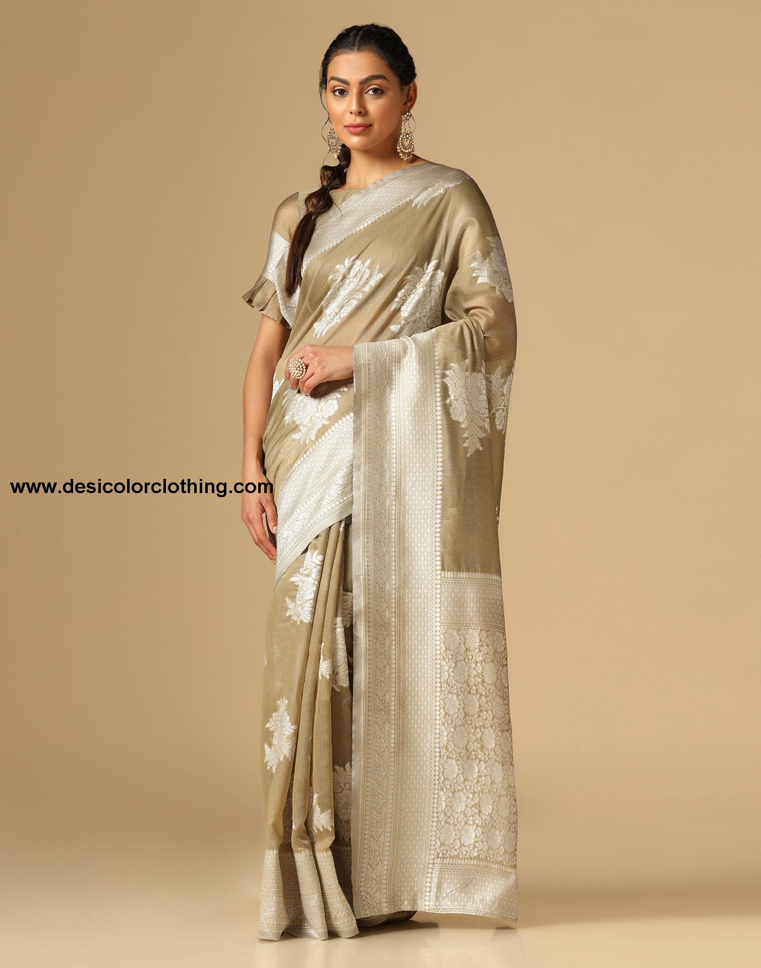 Blouse Color:Beige Blouse Fabric:Poly Cotton Blouse Length:0.80 Mtr Blouse Work:Jacquard & Dyed Saree Color:Beige & Silver Saree Fabric:Poly Cotton Saree Length:5.50 Mtr Saree Work:Jacquard Type:Banarasi