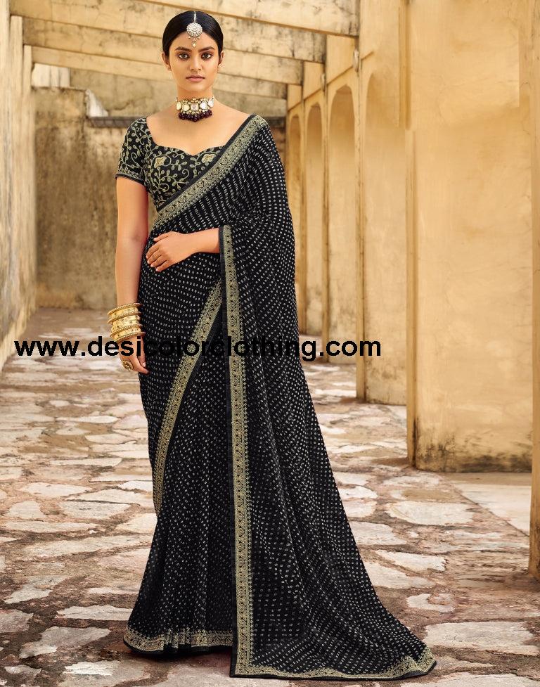 Blouse Color:Black Blouse Fabric:Bhagalpuri Silk Blouse Length:0.80 Mtr Blouse Work:Dyed, Embroidery Work Saree Color:Black Saree Fabric:Georgette Saree Length:5.50 Mtr Saree Work:Bandhani Printed, Embroidery Work In Lace Type:Printed