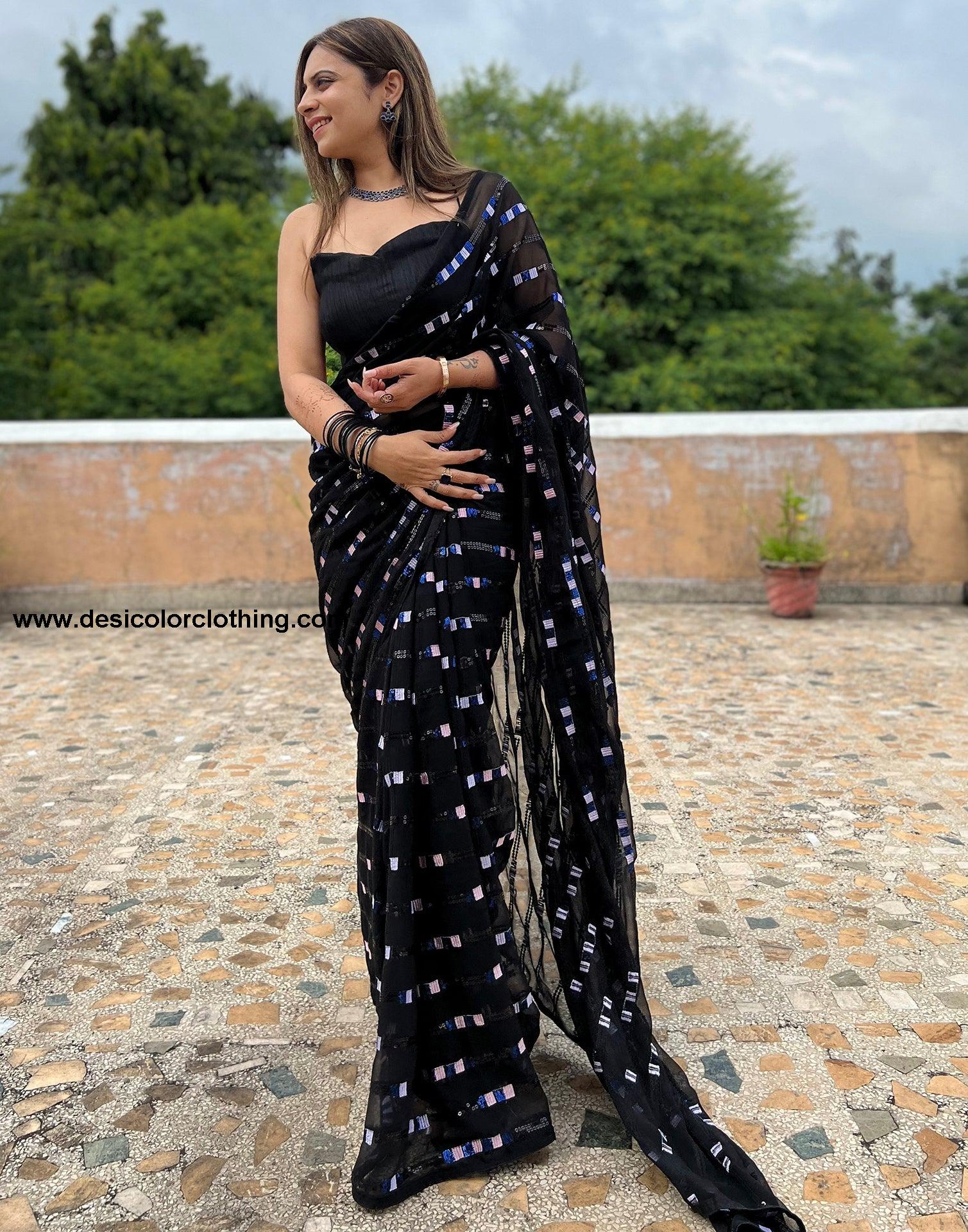 Blouse Color:Black Blouse Fabric:Plain Blouse Length:0.80 Mtr Blouse Work:Plain Saree Color:Black Saree Fabric:Georgette Saree Length:5.50 Mtr Saree Work:Plain