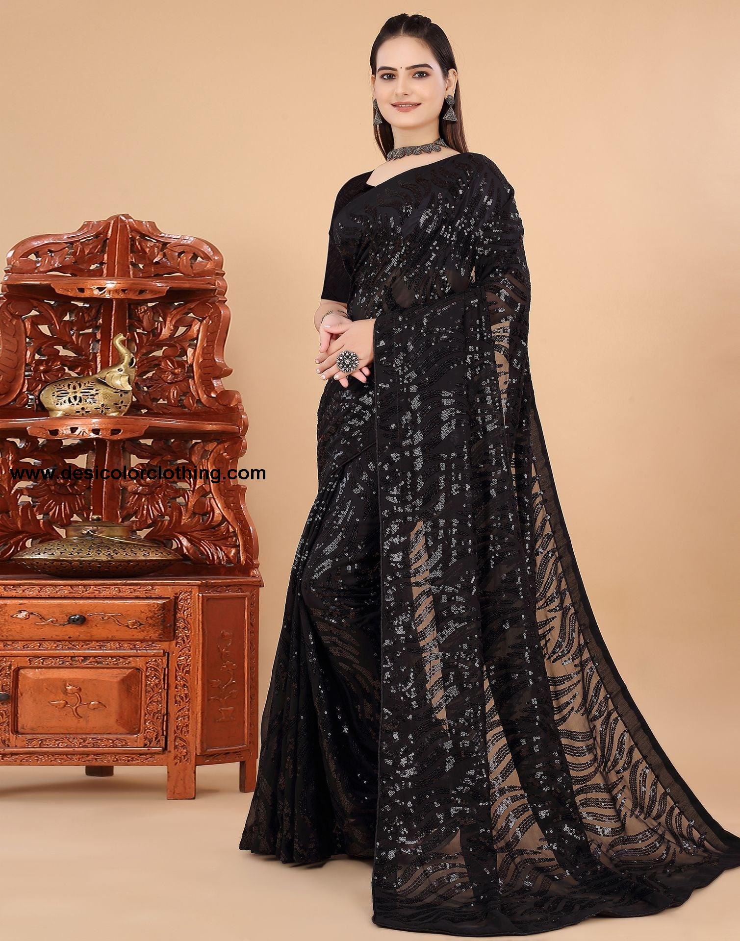 Blouse Color:Black Blouse Fabric:Lakhnavi, Satin Blouse Length:0.80 Mtr Blouse Work:Plain Saree Color:Black Saree Fabric:Georgette Saree Length:5.50 Mtr Saree Work:Plain