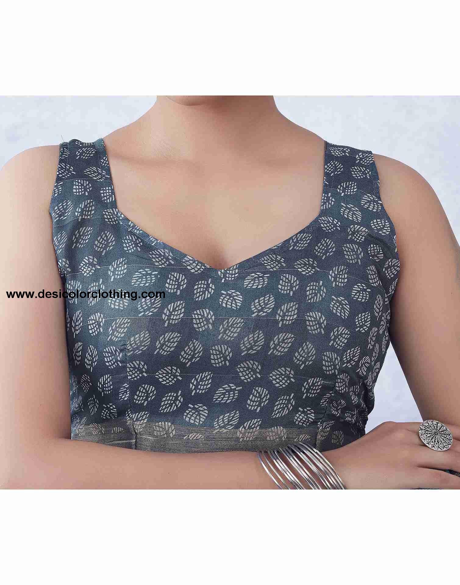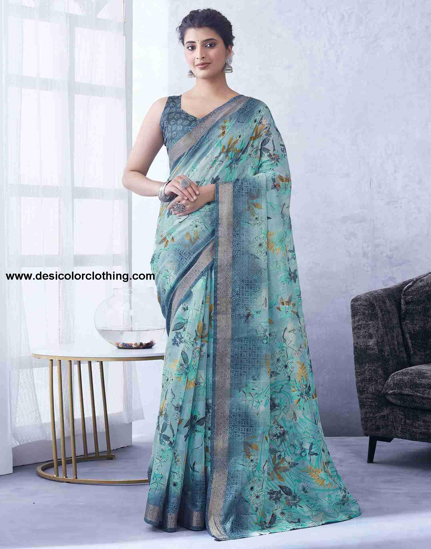 Blouse Color:Grey, White Blouse Fabric:Cotton Blend Blouse Length:0.80 Mtr Blouse Work:Floral Printed, Zari Stripe Saree Color:Blue, Multi Saree Fabric:Cotton Blend Saree Length:5.30 Mtr Saree Work:Floral Printed, Zari Stripe