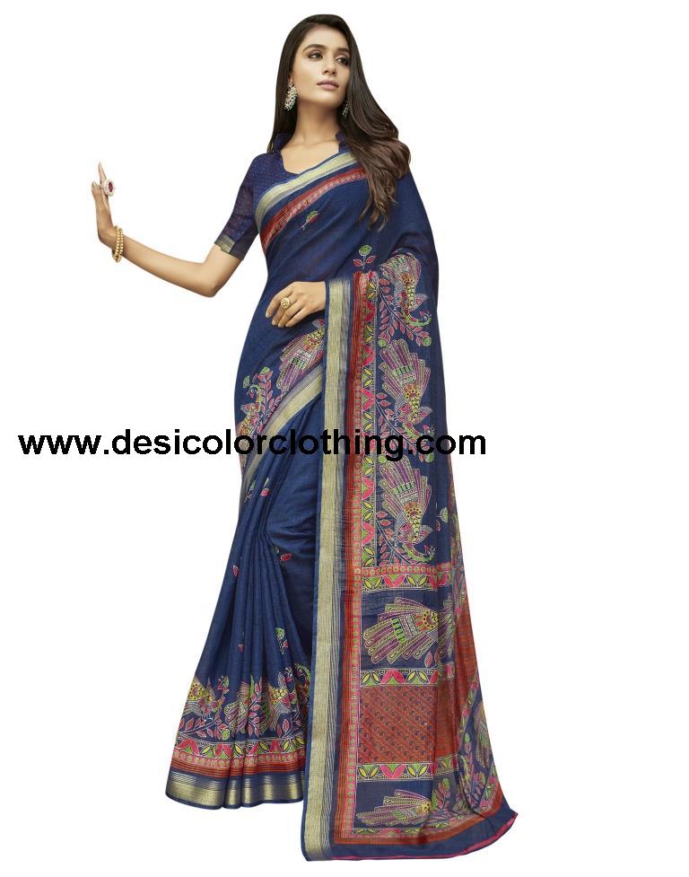 Blue Cotton Saree | 1689S5156