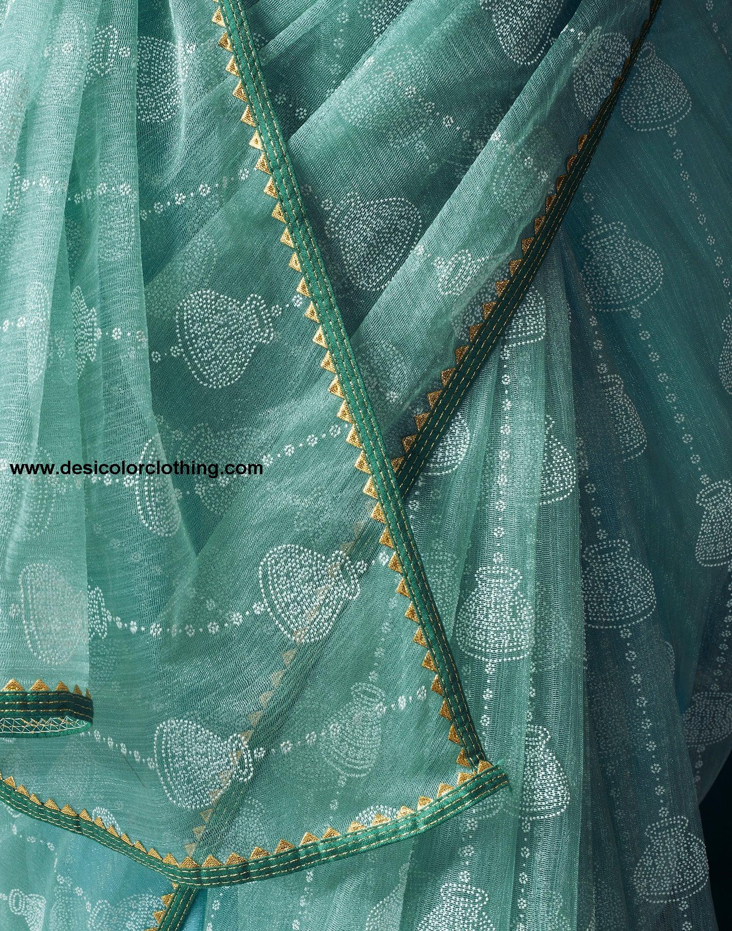 Blouse Color:Blue Blouse Fabric:Plain Blouse Length:0.70 Mtr Blouse Work:Plain, Gota Lace Saree Color:Blue Saree Fabric:Shimmer Net Saree Length:5.30 Mtr Saree Work:Plain