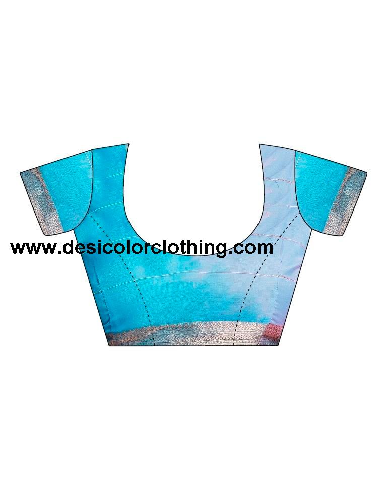 Blouse Color:Blue, Pink, Golden Blouse Fabric:Orgenza Blouse Length:0.70 Mtr Blouse Work:Printed, Zari Woven, Jacquard Border Saree Color:Blue, Pink, Golden Saree Fabric:Orgenza Saree Length:5.30 Mtr Saree Work:Printed, Zari Woven, Jacquard, Zari Stripe