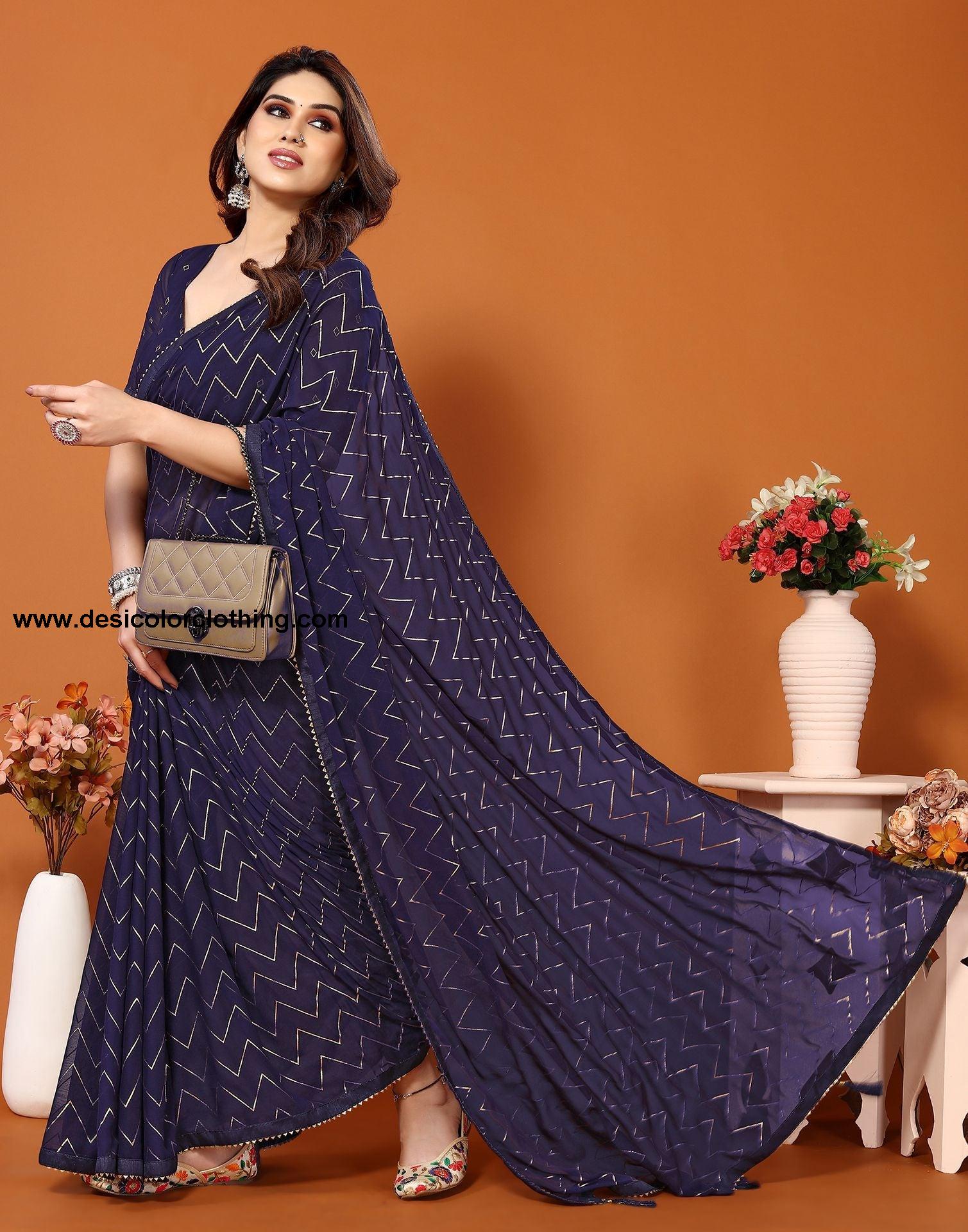 Blouse Color:Blue Blouse Fabric:Georgette Blouse Length:0.80 Mtr Blouse Work:Foil Print Saree Color:Blue Saree Fabric:Georgette Saree Length:5.30 Mtr Saree Work:Printed Type:Printed