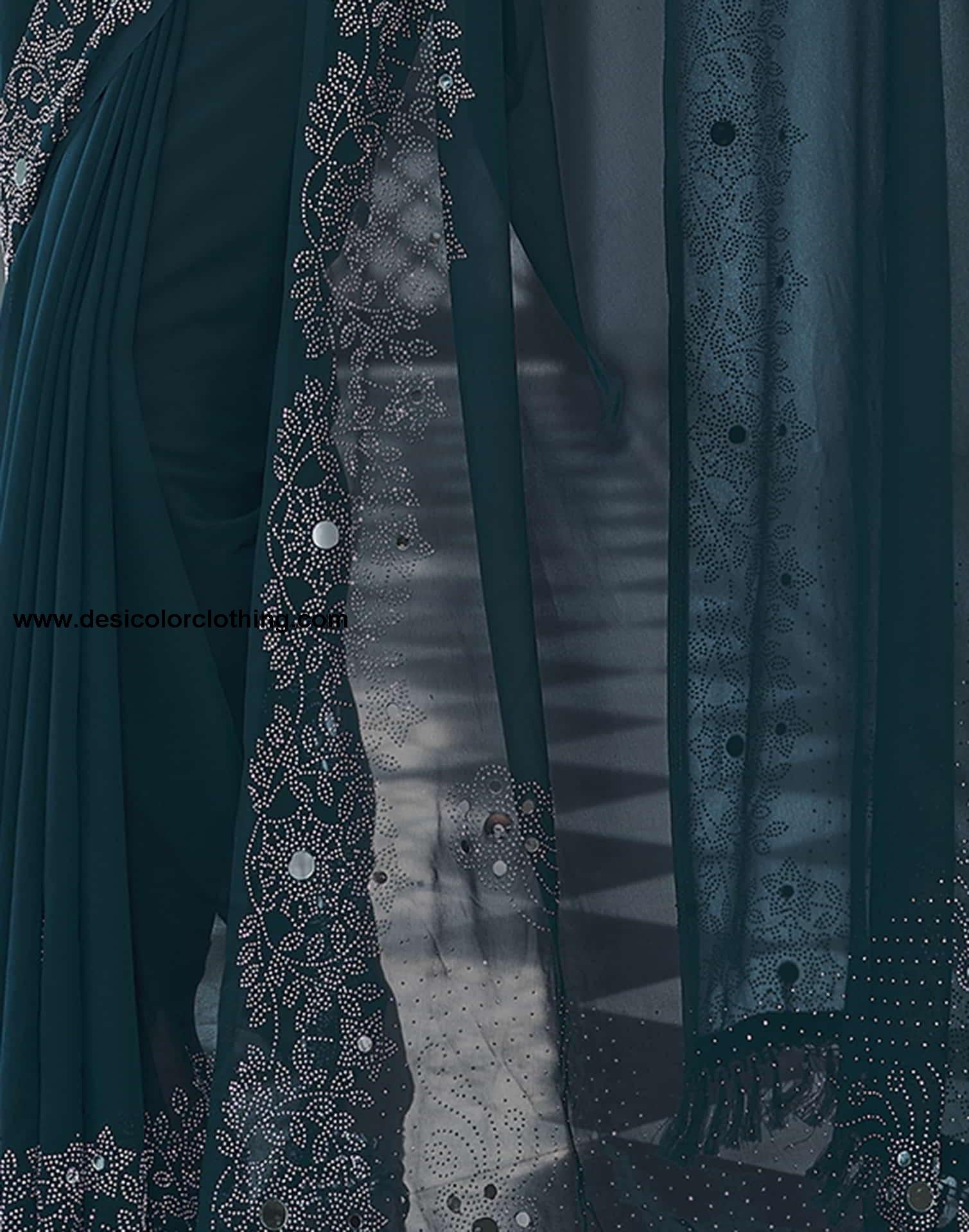 Blue Swarovski Georgette Stone Work Saree