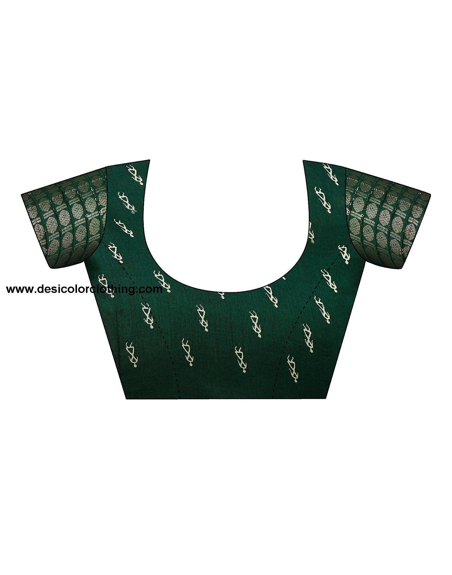 Blouse Color:Bottle Green, Off White Blouse Fabric:Printed Blouse Length:0.70 Mtr Blouse Work:Varli Printed, Weaving And Sequence Border Saree Color:Bottle Green Saree Fabric:Dola Silk Saree Length:5.50 Mtr Saree Work:Printed