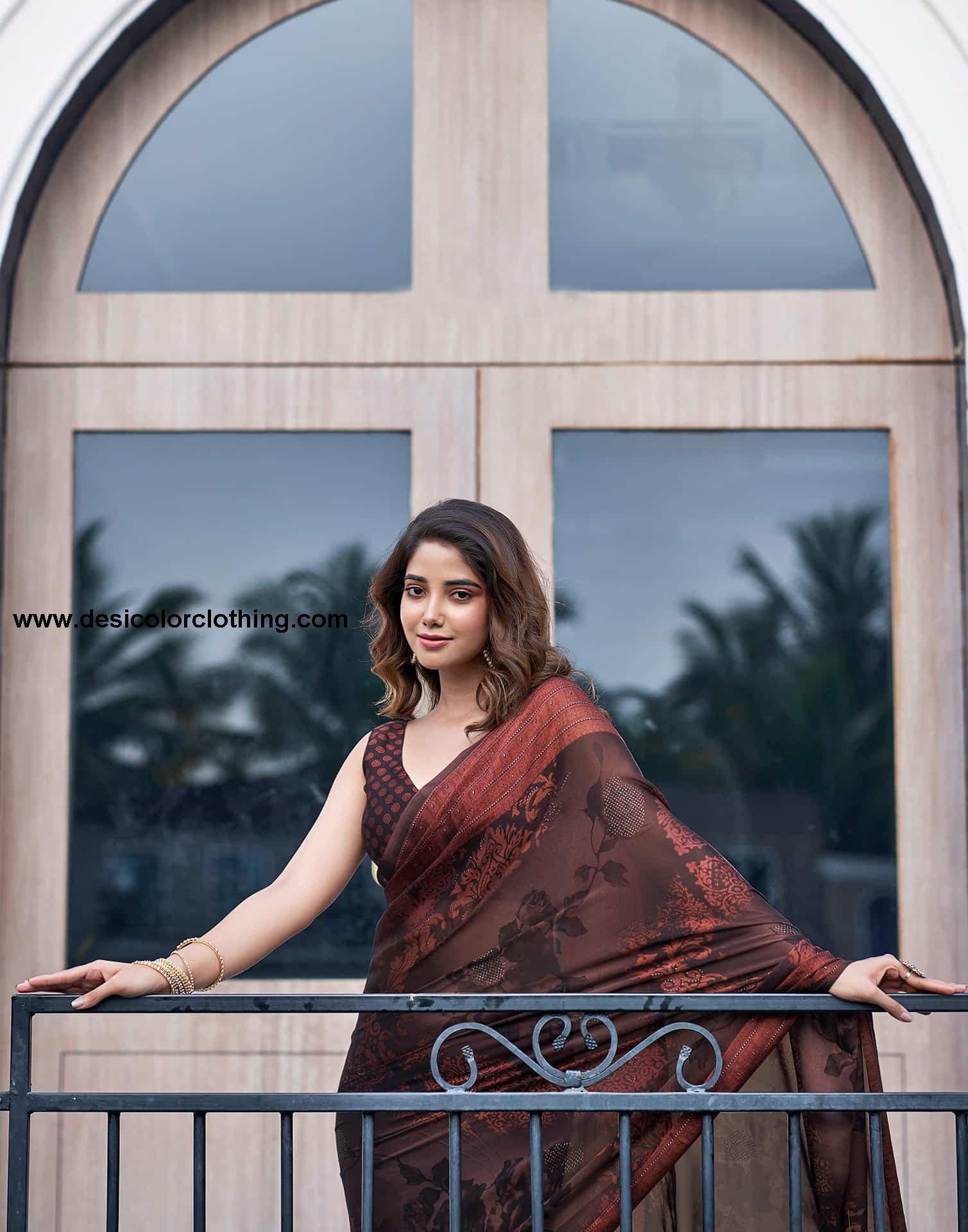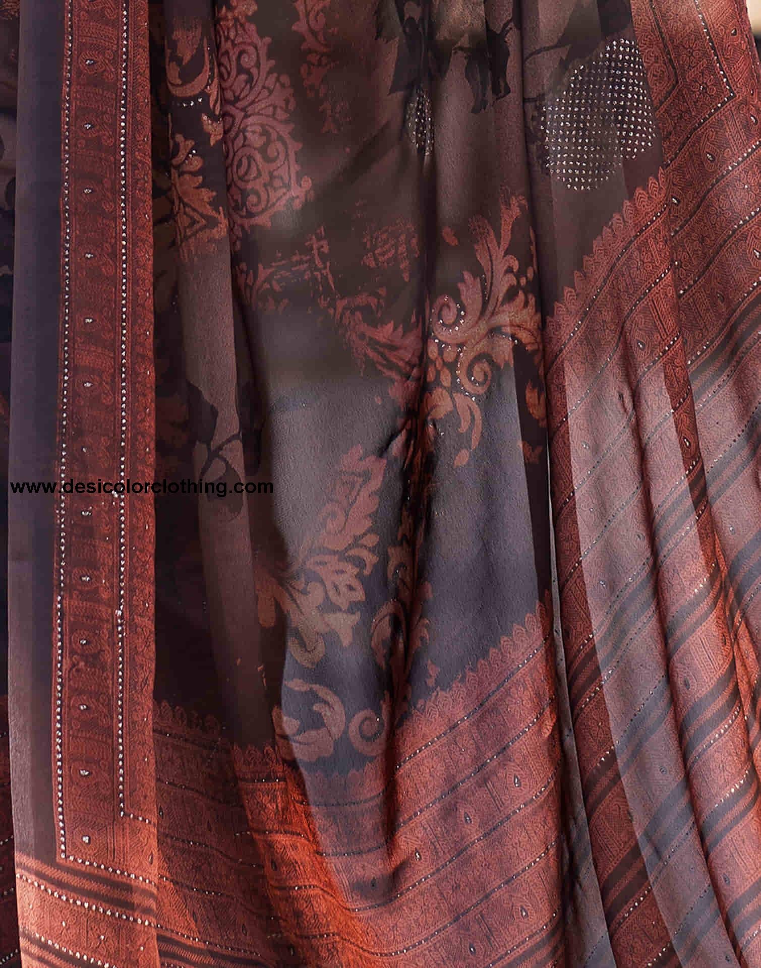 Saree Color:Brown, Rust, Mulitcolored Type:Printed