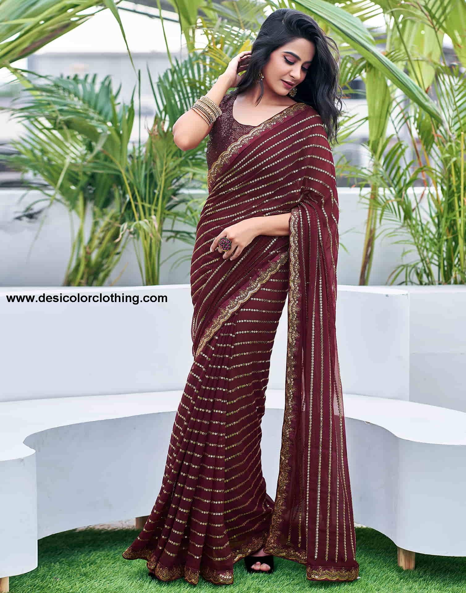Brown Georgette Sequence Saree