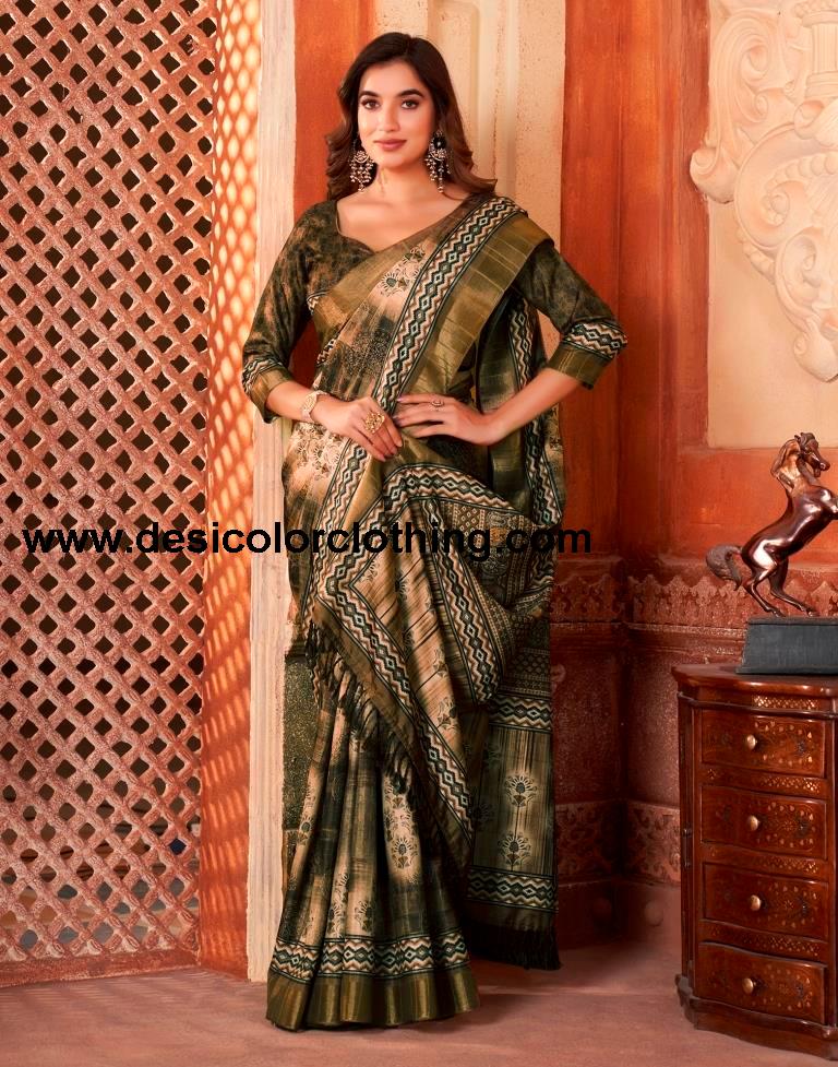Blouse Color:Brown, Beige, Multi Blouse Fabric:Silk Blouse Length:0.80 Mtr Blouse Work:Digital Printed, Golden Zari Borde Saree Color:Brown, Beige, Multi Saree Fabric:Silk Saree Length:5.50 Mtr Saree Work:Digital Printed, Golden Zari Border, Tassels
