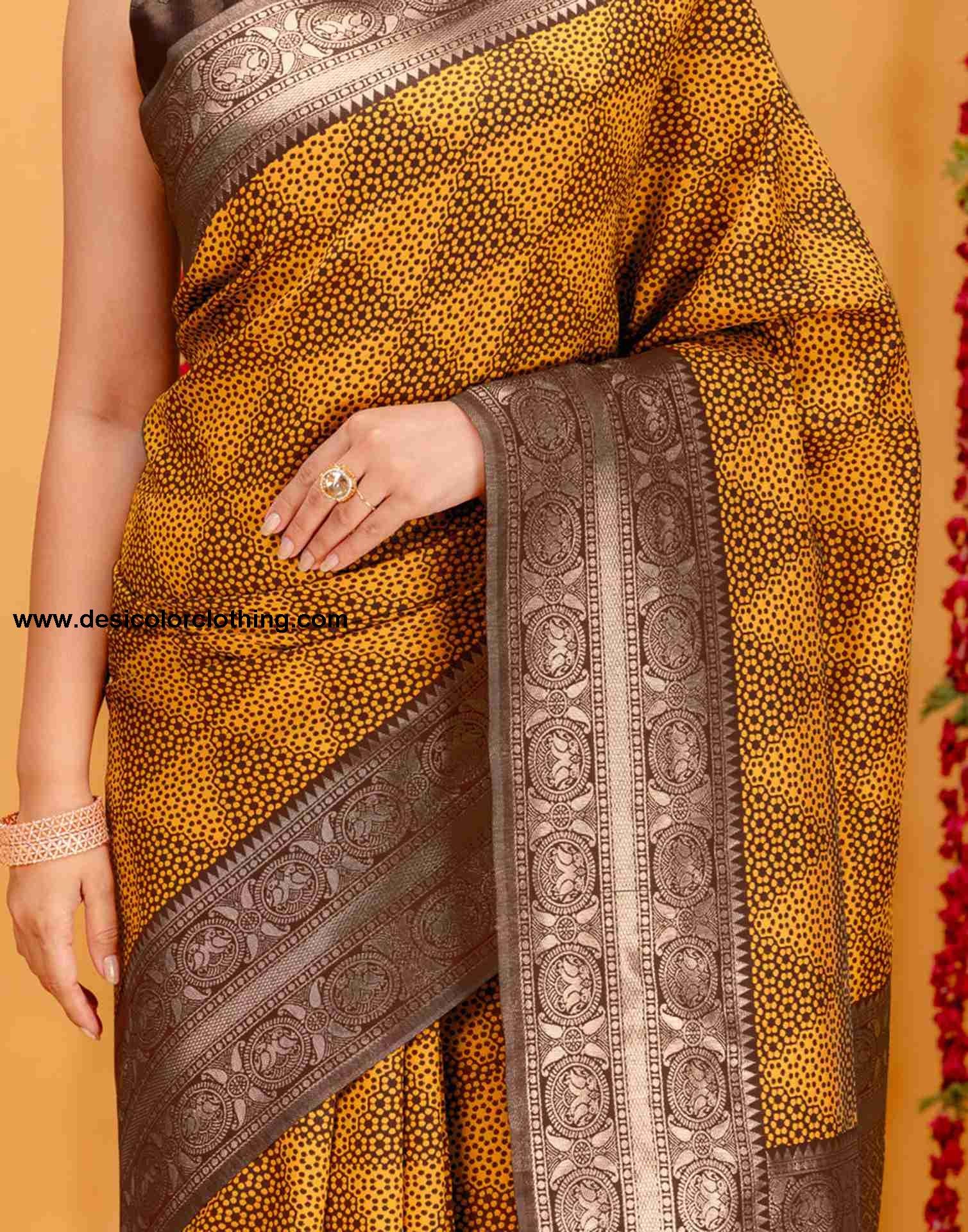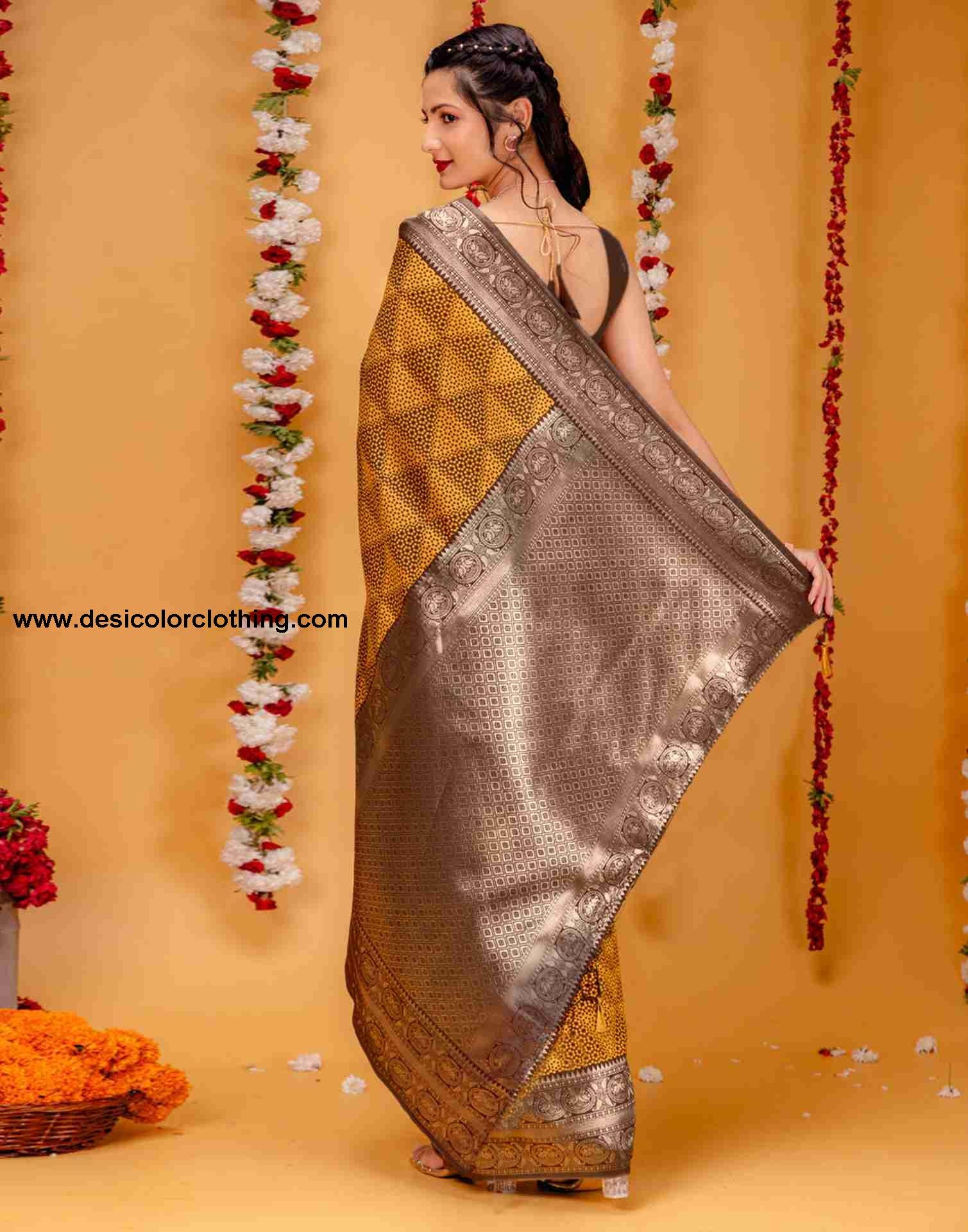 Blouse Color:Brown Blouse Fabric:Silk Blouse Length:0.80 Mtr Blouse Work:Plain, Woven Saree Color:Brown, Silver Saree Fabric:Banarasi Silk Saree Length:5.50 Mtr Saree Work:Woven, Woven