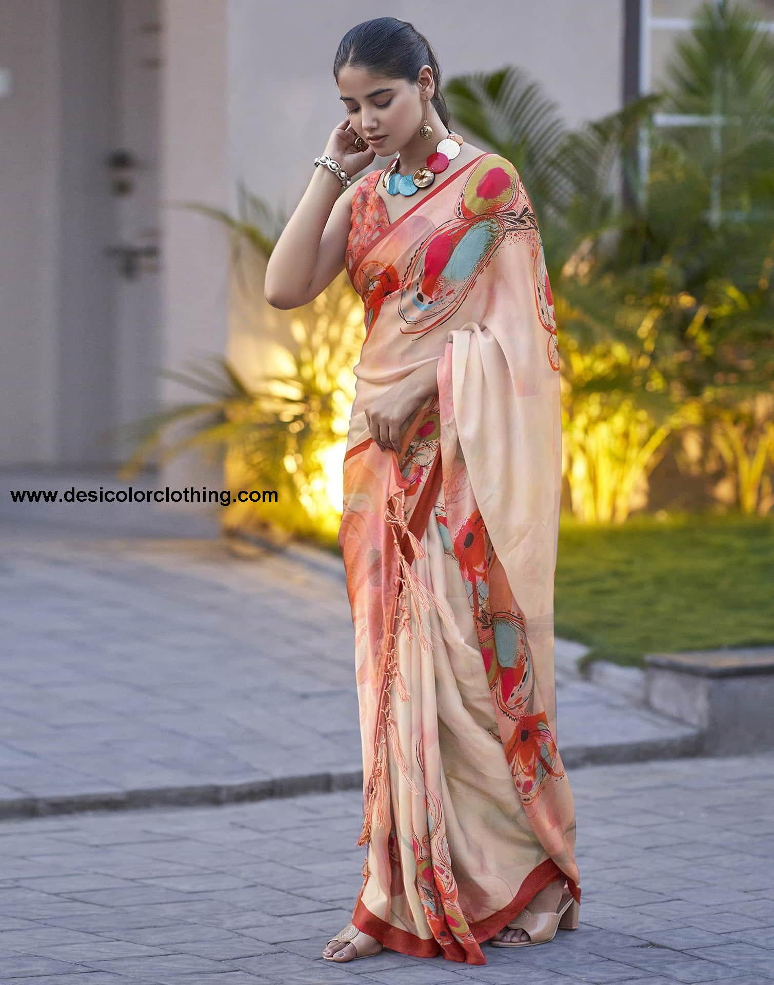 Blouse Color:Red, Multi Blouse Fabric:Viscose Satin Blouse Length:0.80 Mtr Blouse Work:Printed Saree Color:Cream, Red, Multi Saree Fabric:Viscose Satin Saree Length:5.50 Mtr Saree Work:Floral Printed, Tassels Type:Printed
