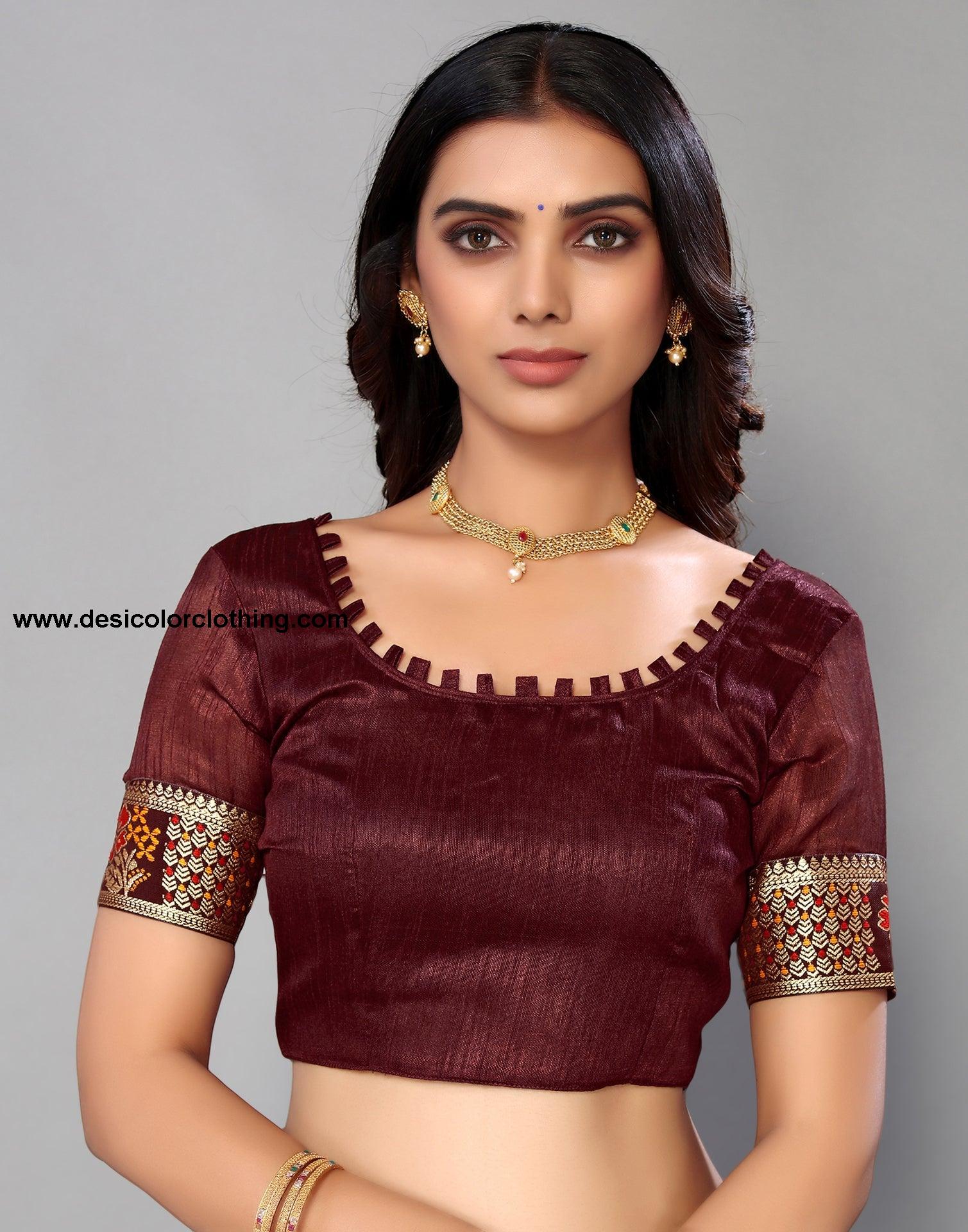 Blouse Color:Dark Brown Blouse Fabric:Bhagalpuri Silk Blouse Length:0.70 Mtr Blouse Work:Lace, Dyed Saree Color:Dark Brown Saree Fabric:Lycra Saree Length:5.50 Mtr Saree Work:Jacquard Lace, Tassel, Printed (Embossed) Type:Printed