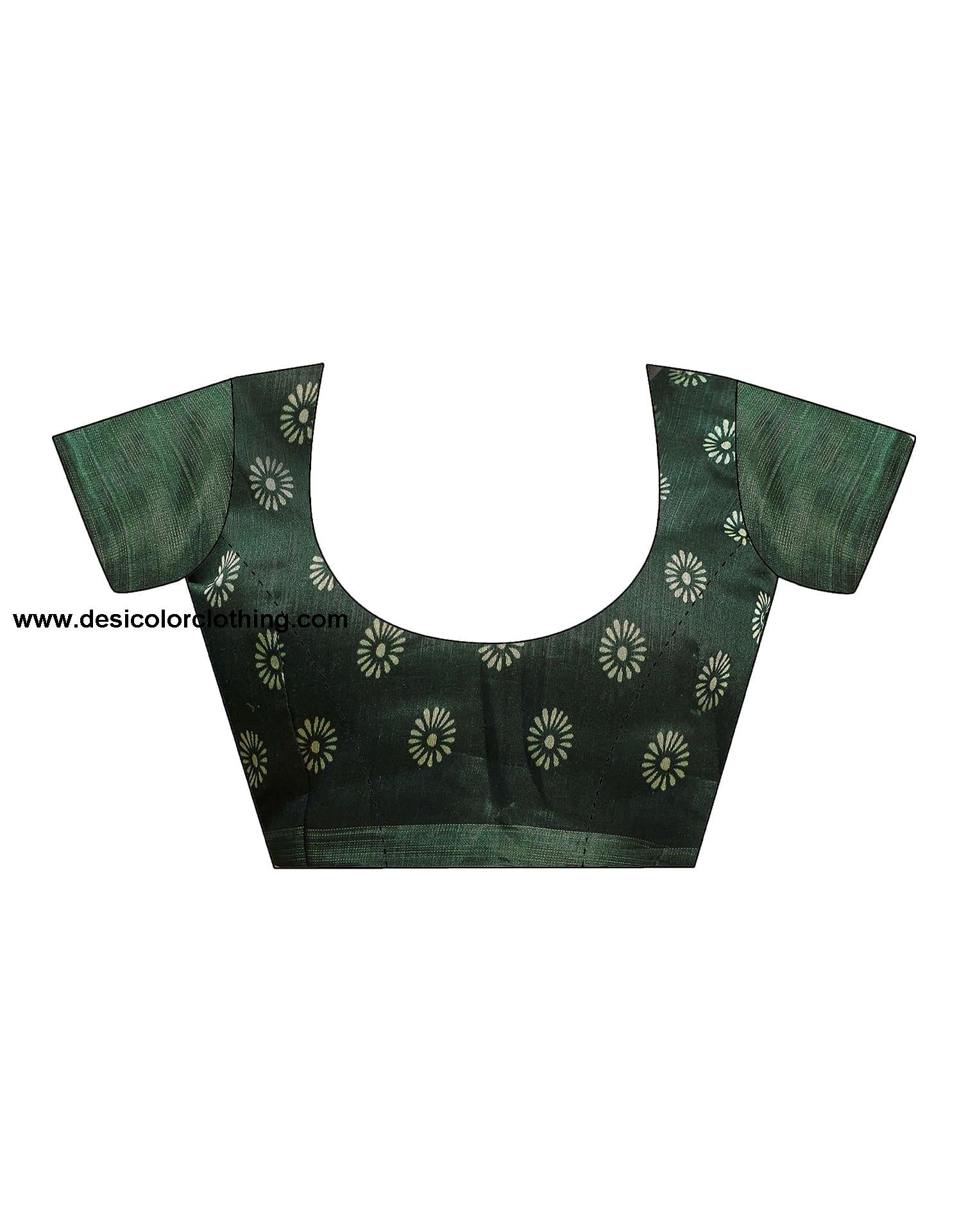Dark Green Cotton Printed Saree