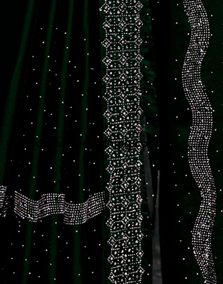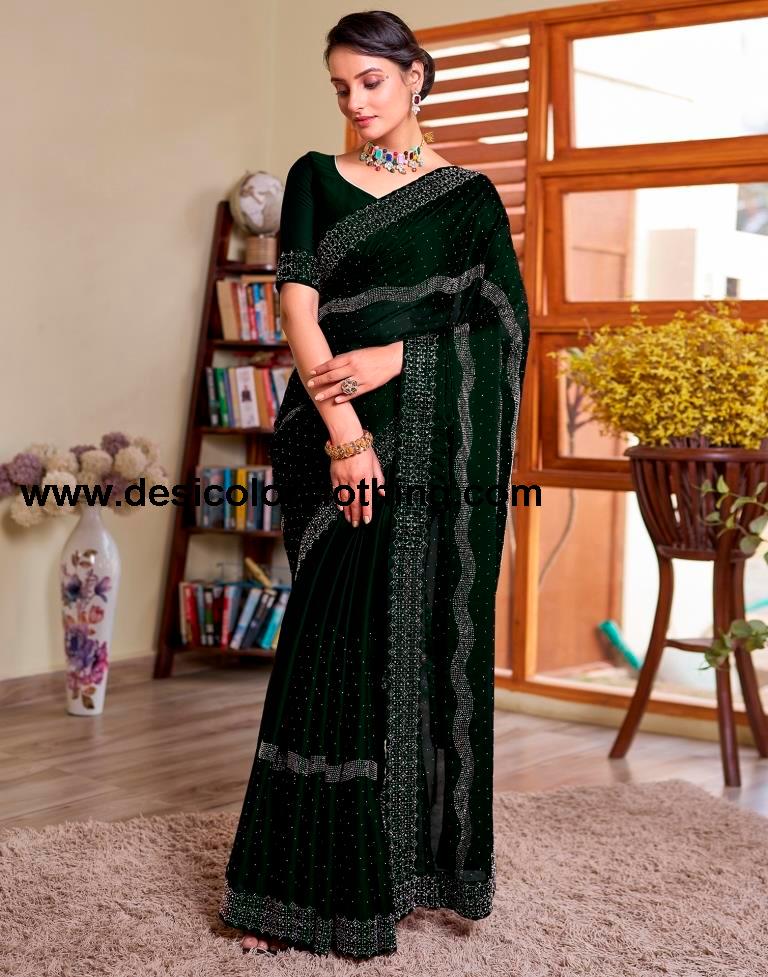 Blouse Color:Dark Green Blouse Fabric:Georgette Blouse Length:0.80 Mtr Blouse Work:Plain, Hot Fixing Border Saree Color:Dark Green Saree Fabric:Georgette Saree Length:5.50 Mtr Saree Work:Plain, Hot Fixing