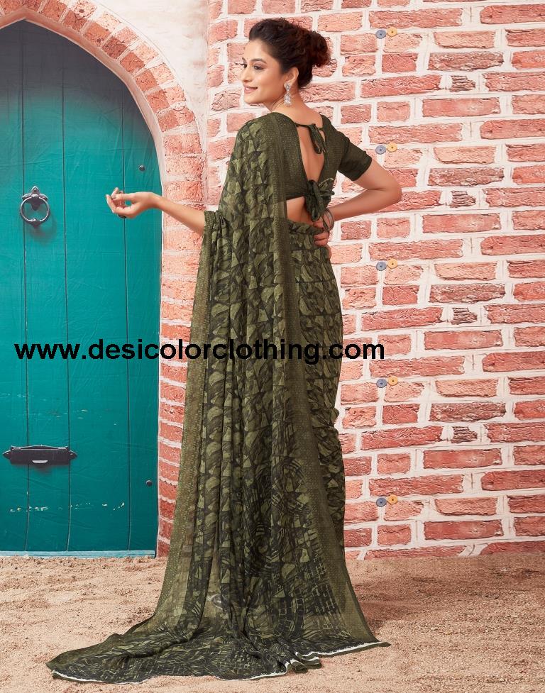 Blouse Color:Dark Green Blouse Fabric:Georgette Blouse Length:0.70 Mtr Blouse Work:Printed Saree Color:Dark Green Saree Fabric:Georgette Saree Length:5.30 Mtr Saree Work:Geometric Printed
