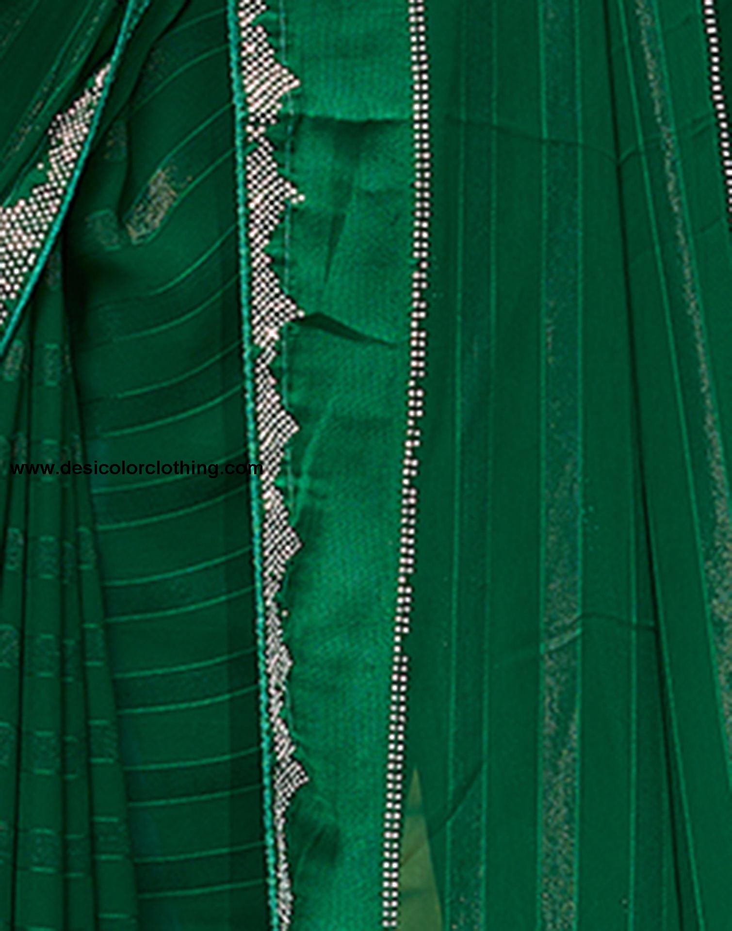 Dark Green Plain Georgette Saree