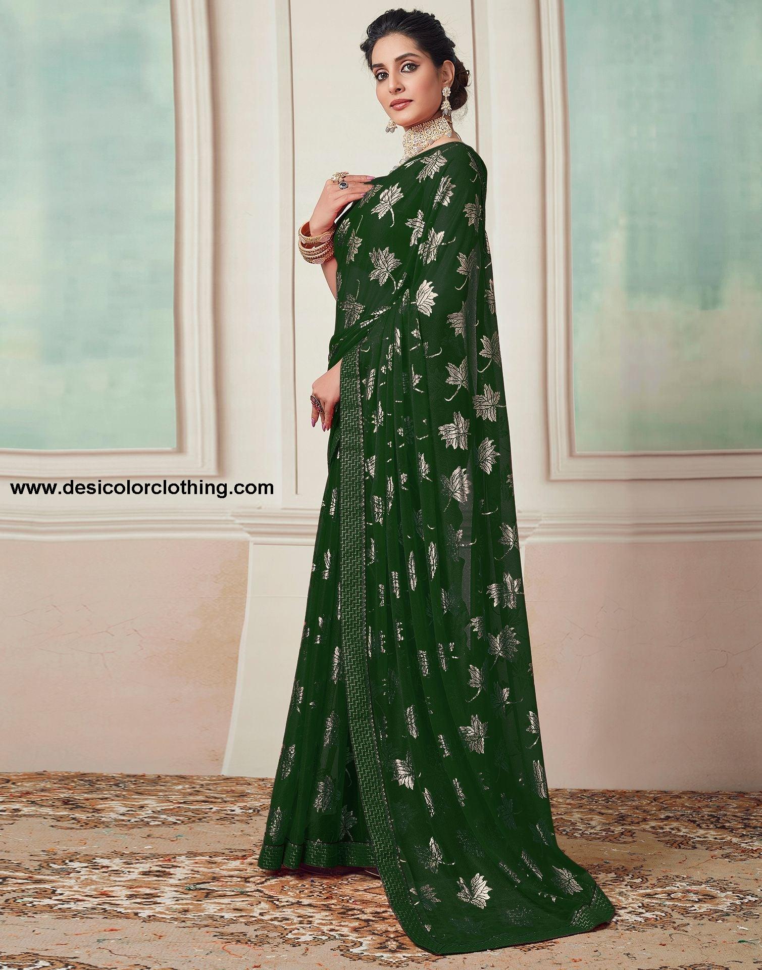 Blouse Color:Dark Green Blouse Fabric:Satin Blouse Length:0.80 Mtr Blouse Work:Plain Saree Color:Dark Green Saree Fabric:Lycra Saree Length:5.50 Mtr Saree Work:Plain