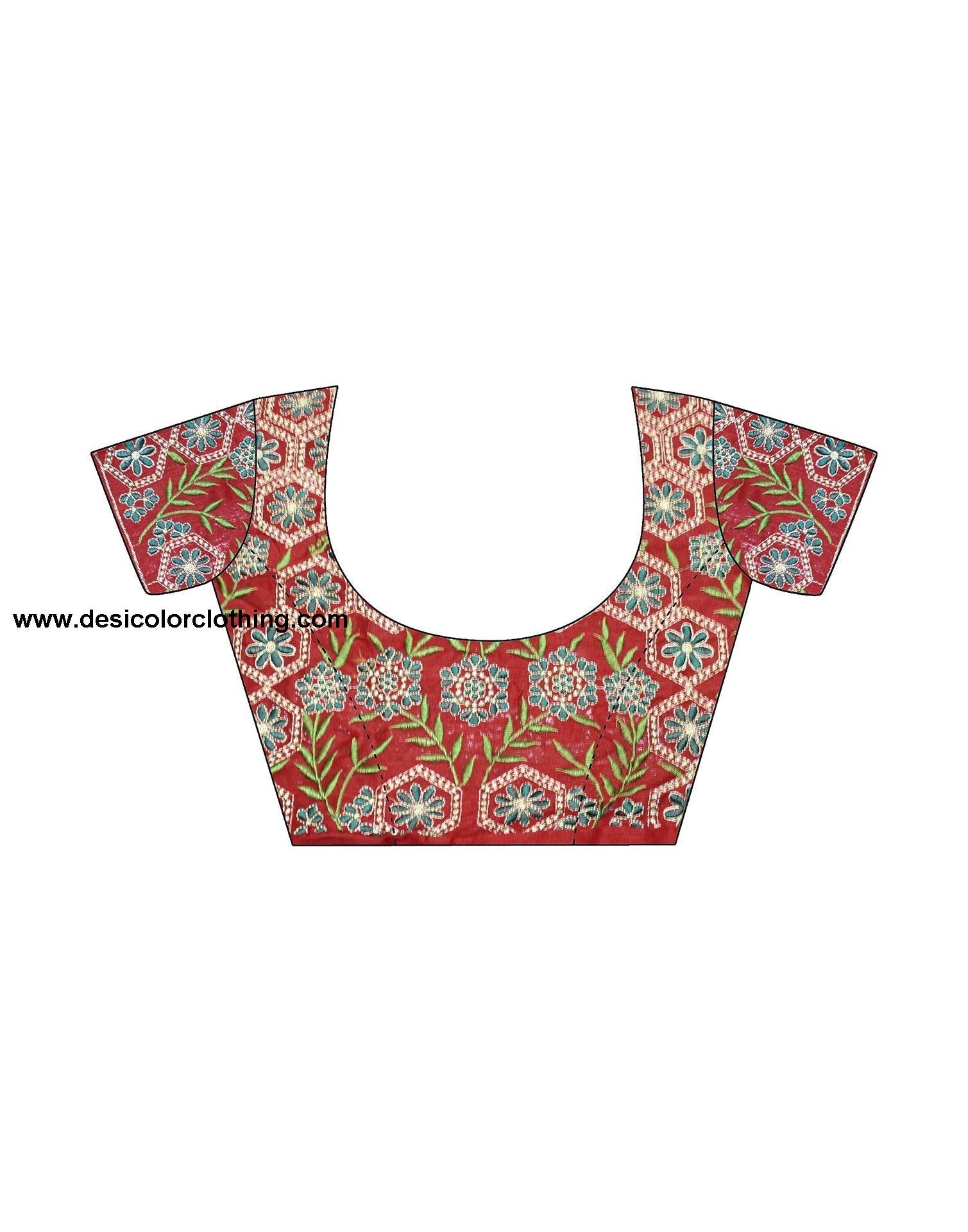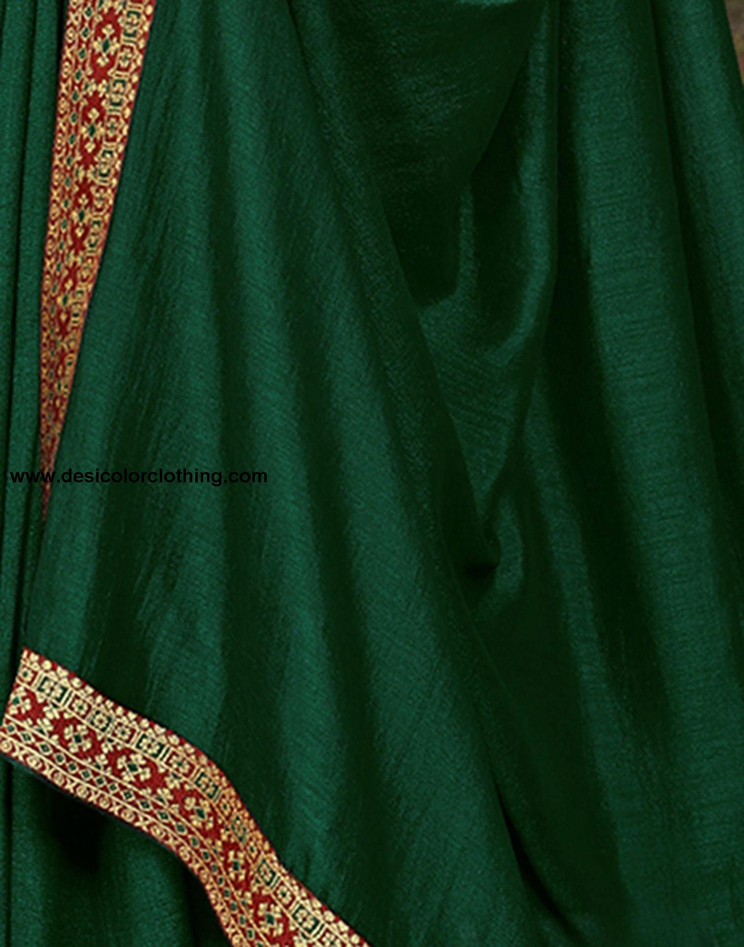 Blouse Color:Red Blouse Fabric:Art Silk Blouse Length:0.80 Mtr Blouse Work:Embroidery Saree Color:Dark Green Saree Fabric:Poly Silk(Vichitra Silk) Saree Length:5.50 Mtr Saree Work:Plain, Lace