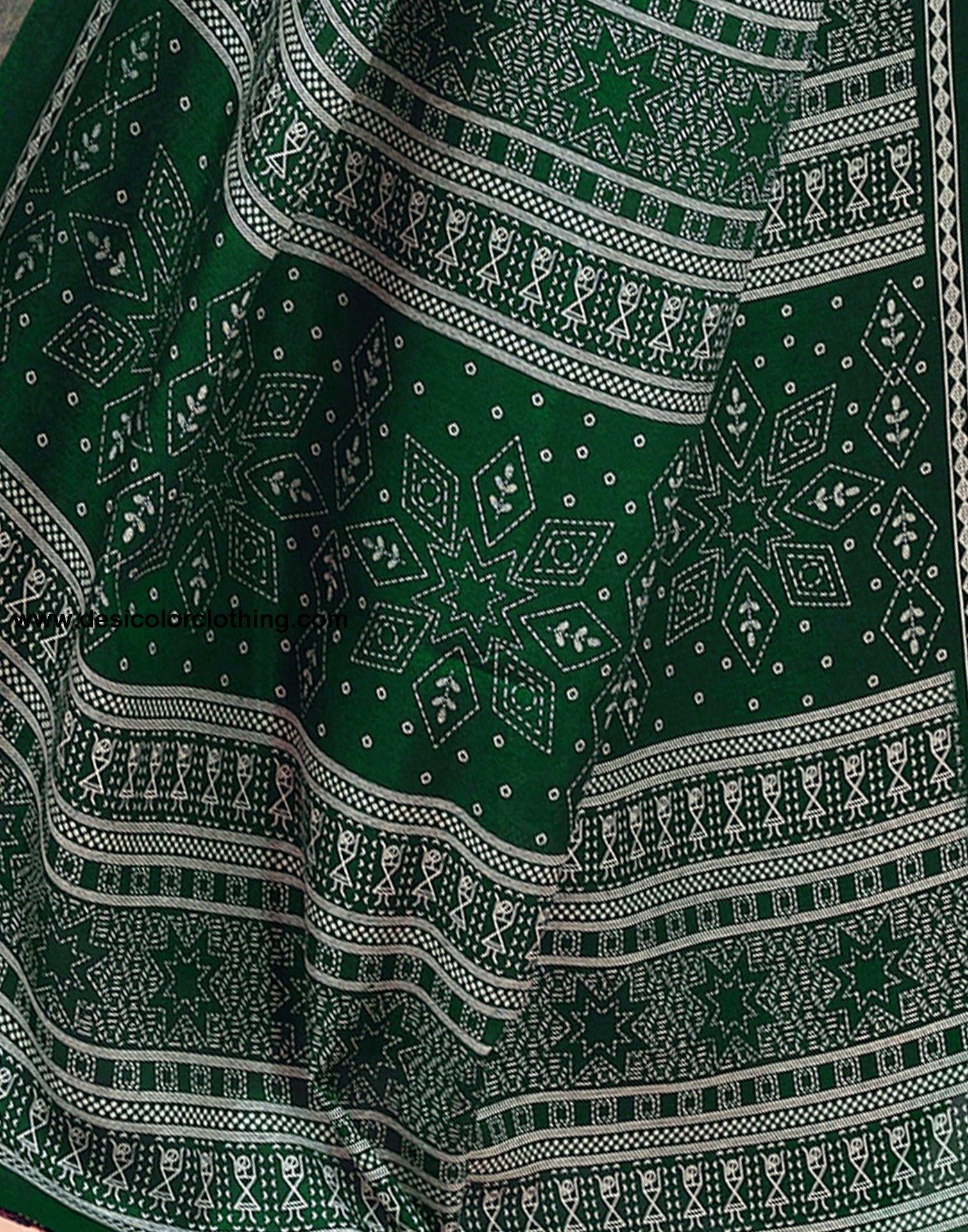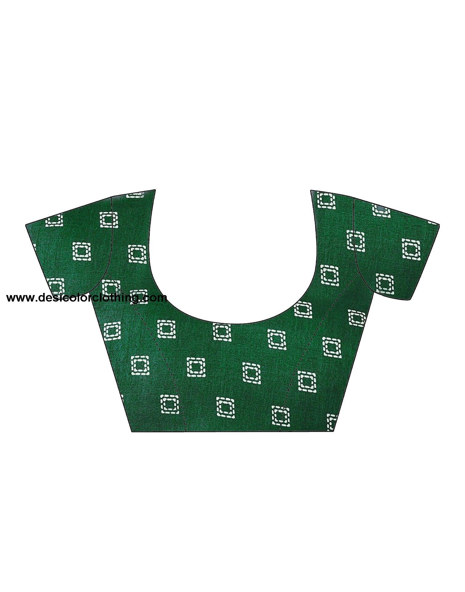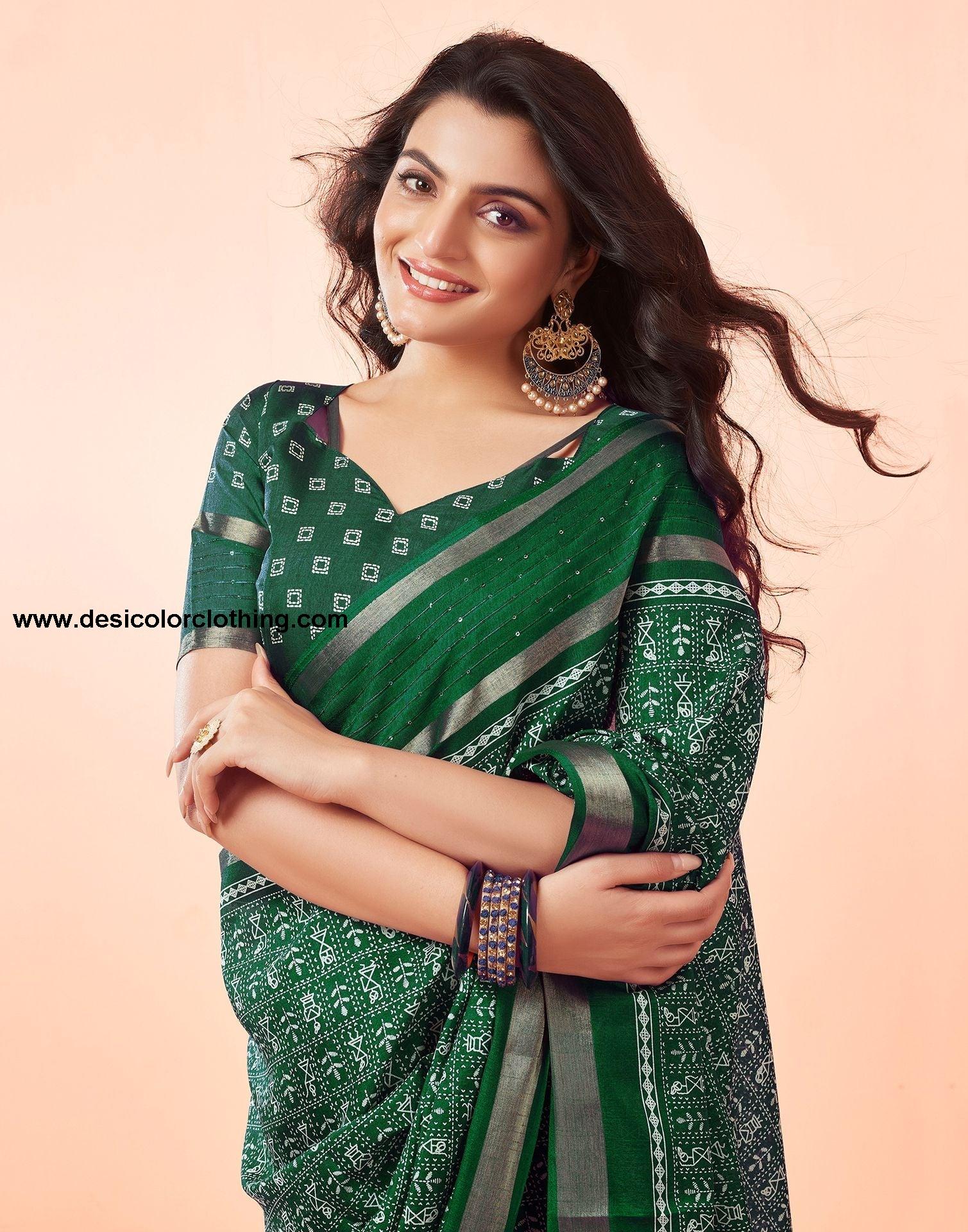 Blouse Color:Dark Green, Off White Blouse Fabric:Poly Cotton Blouse Length:0.80 Mtr Blouse Work:Plain, Printed, Self Woven Border, Zari Strips Saree Color:Dark Green Saree Fabric:Poly Cotton Saree Length:5.50 Mtr Saree Work:Printed, Self Woven Border, Zari Strips