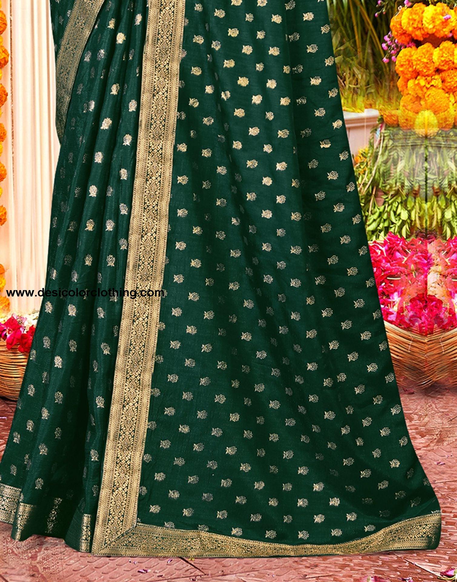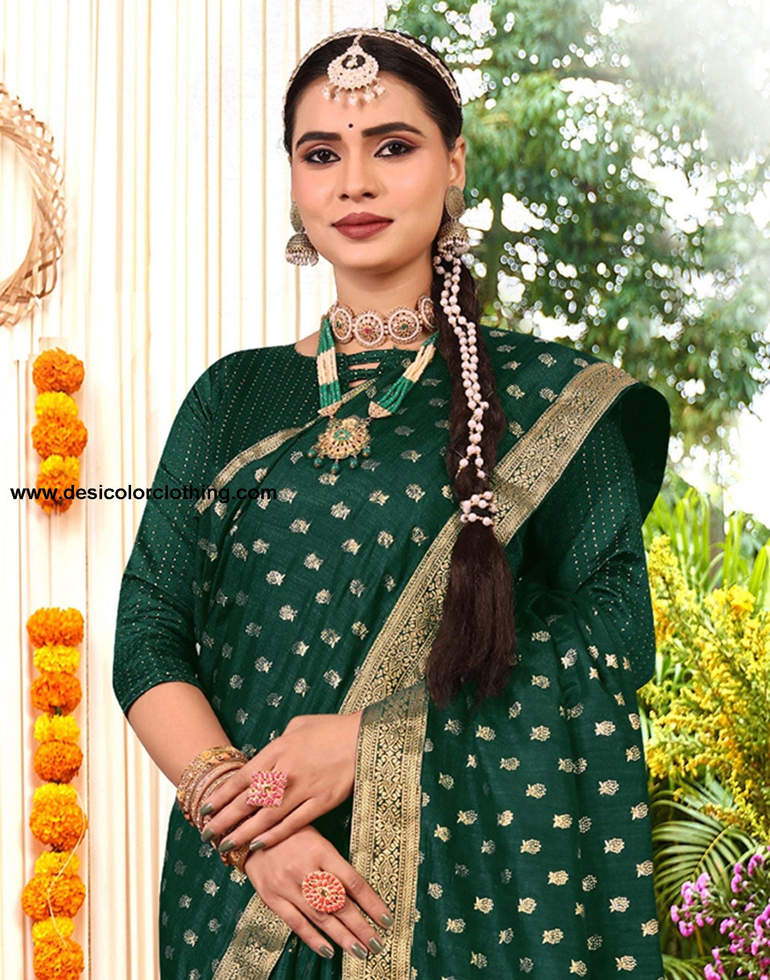 Blouse Color:Dark Green Blouse Fabric:Poly Silk Blouse Length:0.80 Mtr Blouse Work:Jacquard Saree Color:Dark Green Saree Fabric:Poly Silk Saree Length:5.50 Mtr Saree Work:Plain