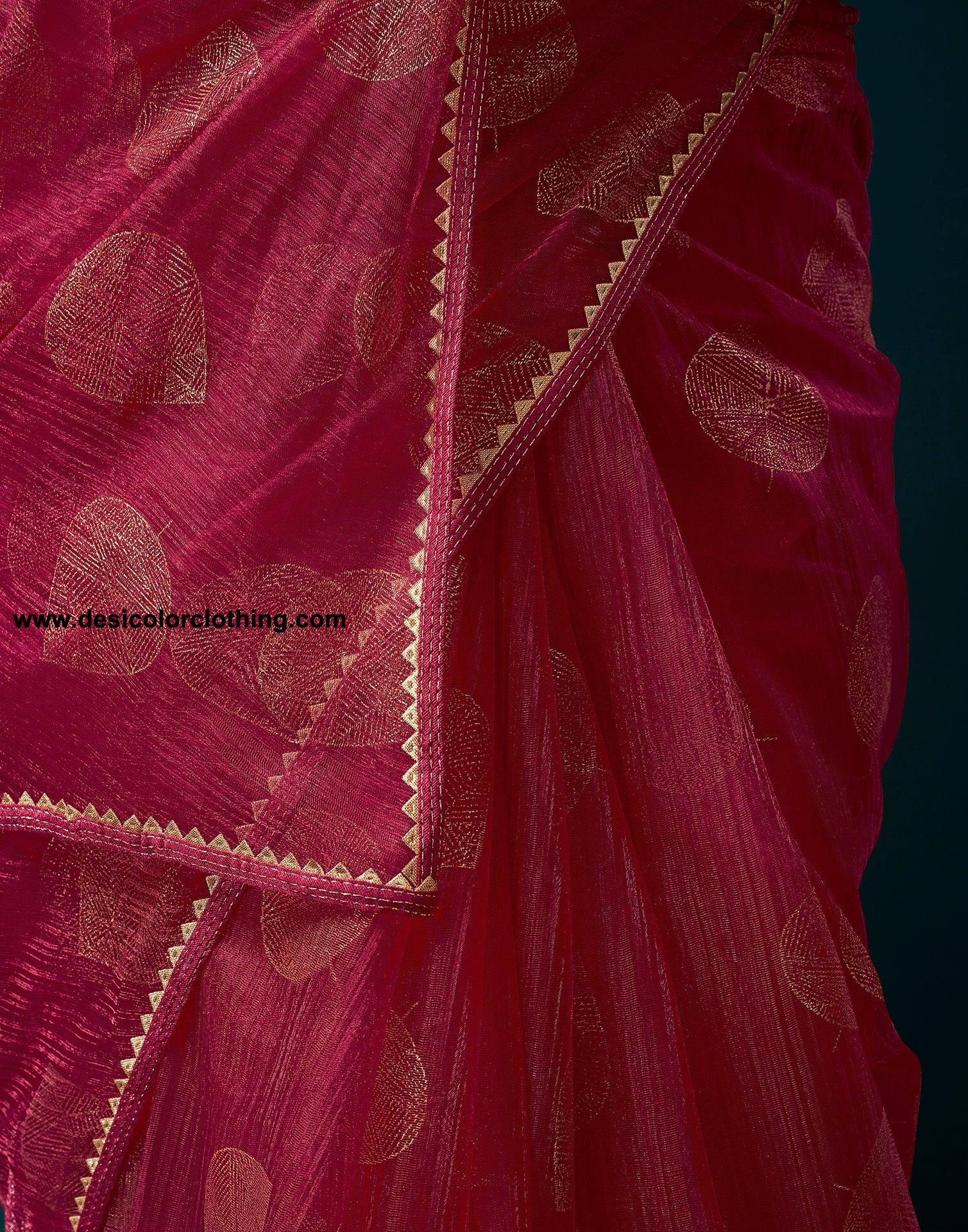Blouse Color:Pink Blouse Fabric:Plain Blouse Length:0.70 Mtr Blouse Work:Plain, Gota Lace Saree Color:Dark Pink Saree Fabric:Shimmer Net Saree Length:5.30 Mtr Saree Work:Plain